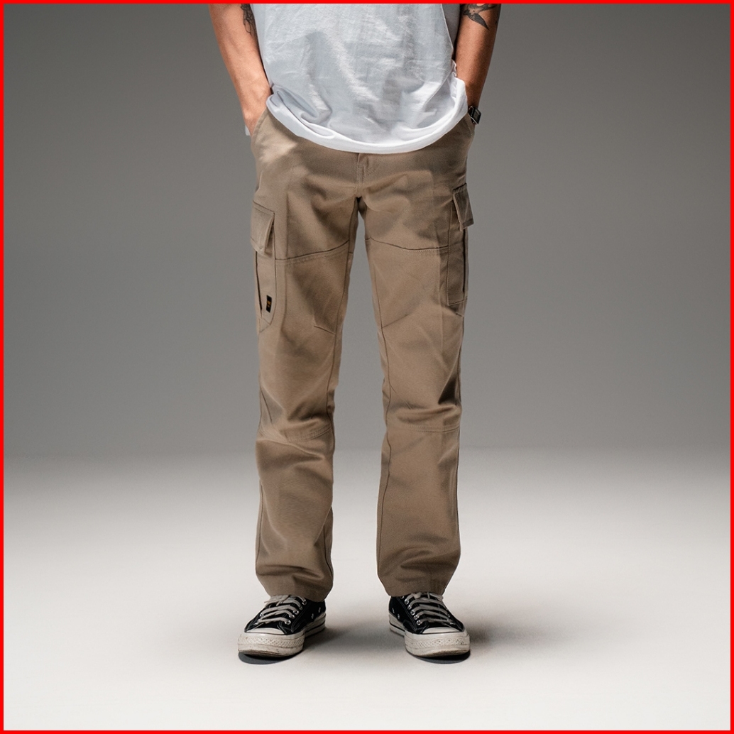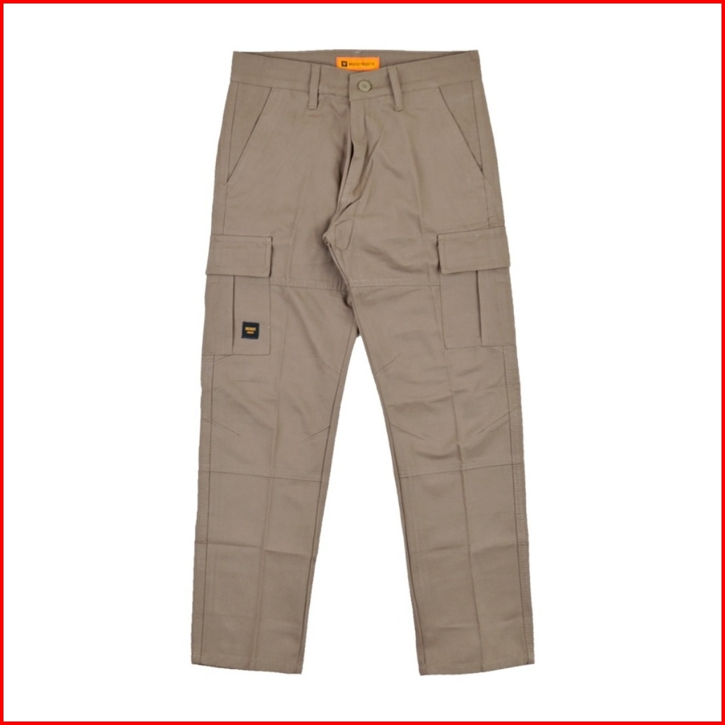 Mickout Slava Cargo Pants - Celana Panjang Pria Rigid Cotton Straight Fit - Khaki
