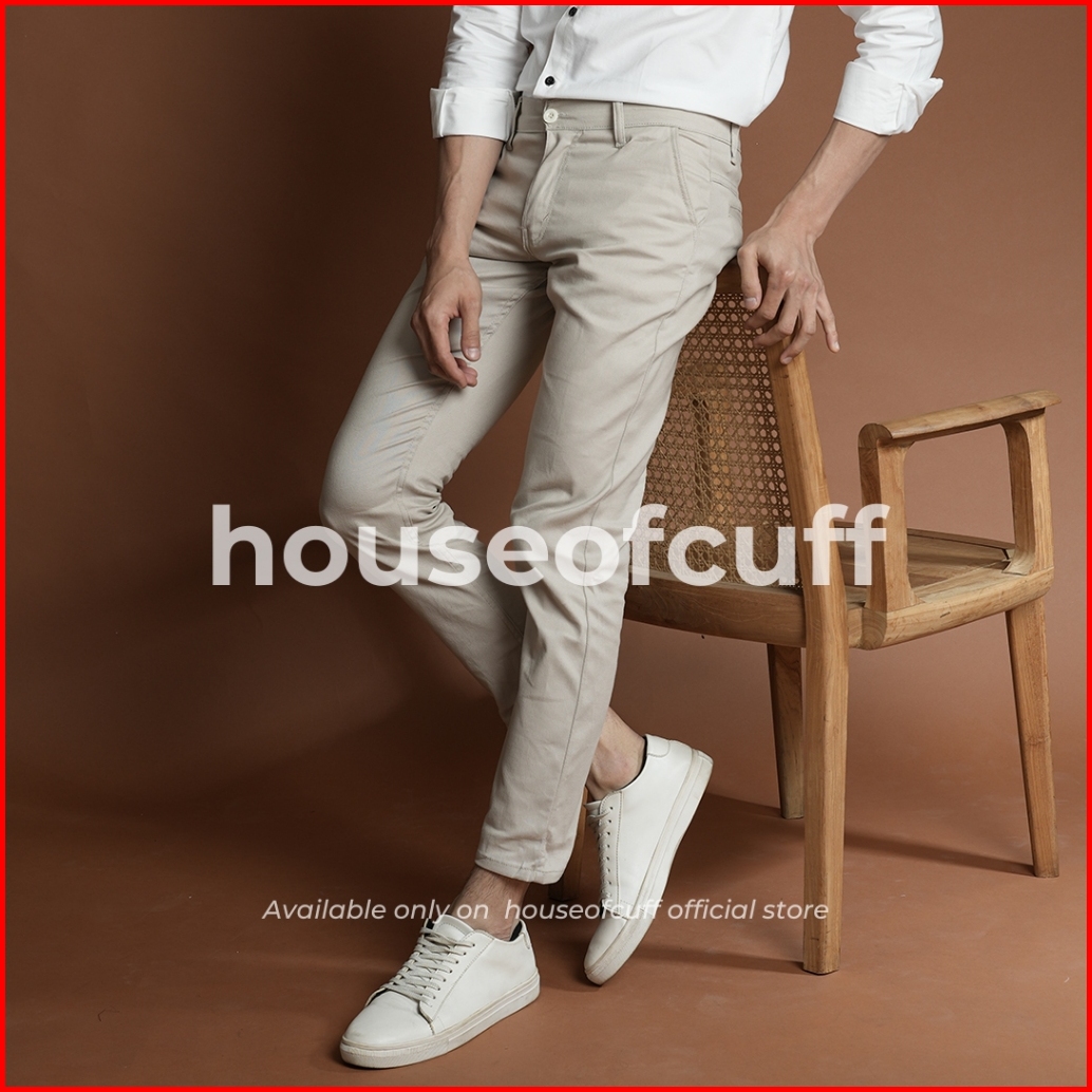 Houseofcuff Celana Chino Panjang Pria Slim Fit Stretch Jeans Krim