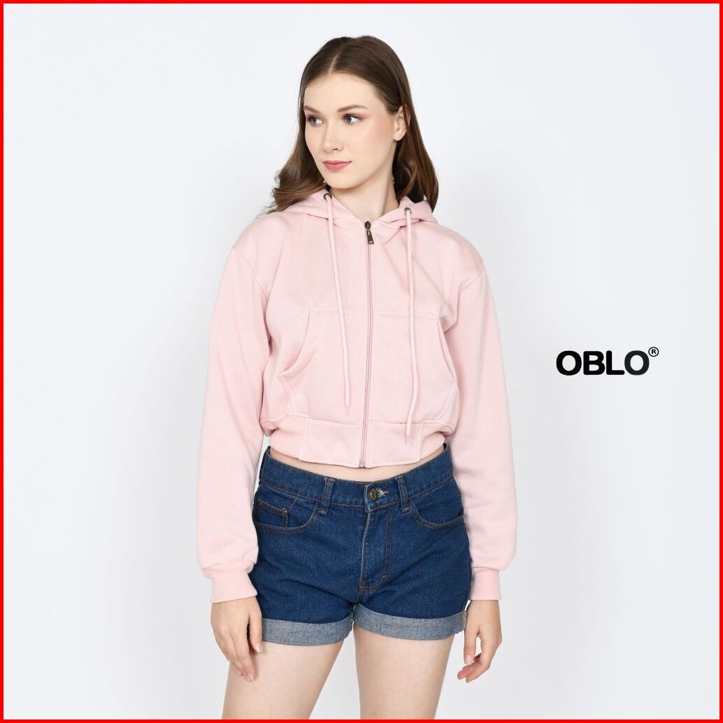 Oblo Basic Hoodie Crop Zipper Jaket Resleting Wanita Allsize