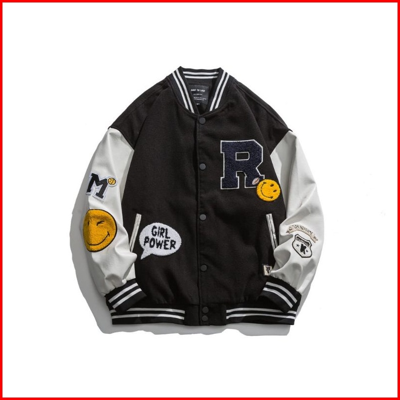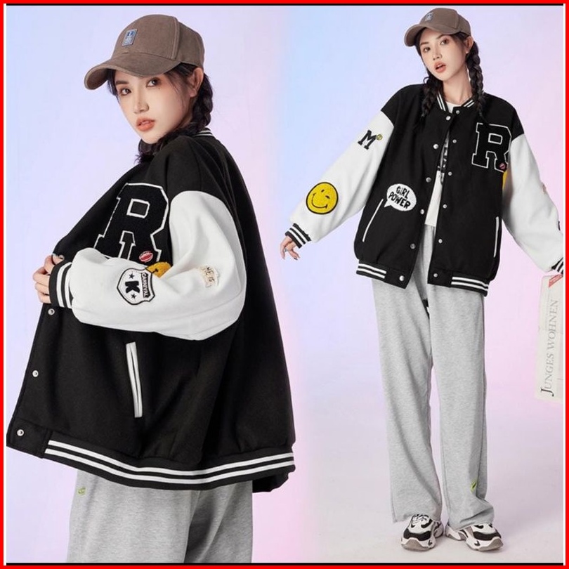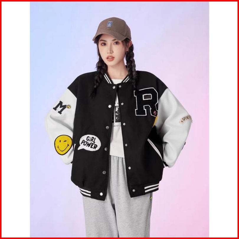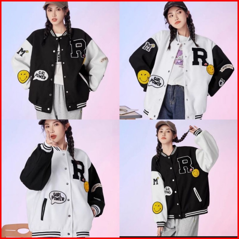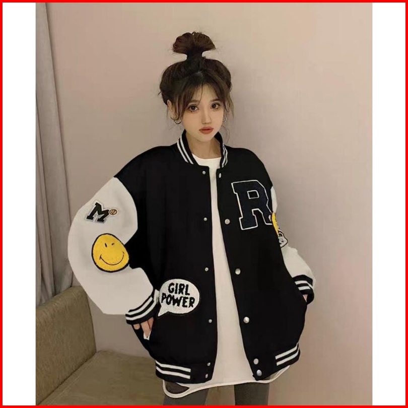 Jaket Baseball R Smile Size M.l.xl Varsity Jaket Baseball Wanita Oversize Jaket Wanita Baseball