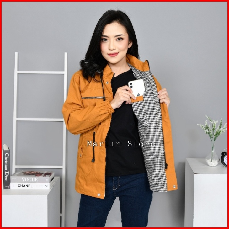 Jaket Jumbo Wanita Bahan Kanvas Size L - Xl - Xxl - Xxxl - Xxxxl Hoodie Topi Bisa Dilepas