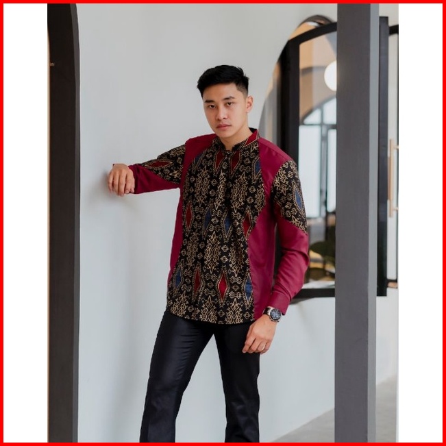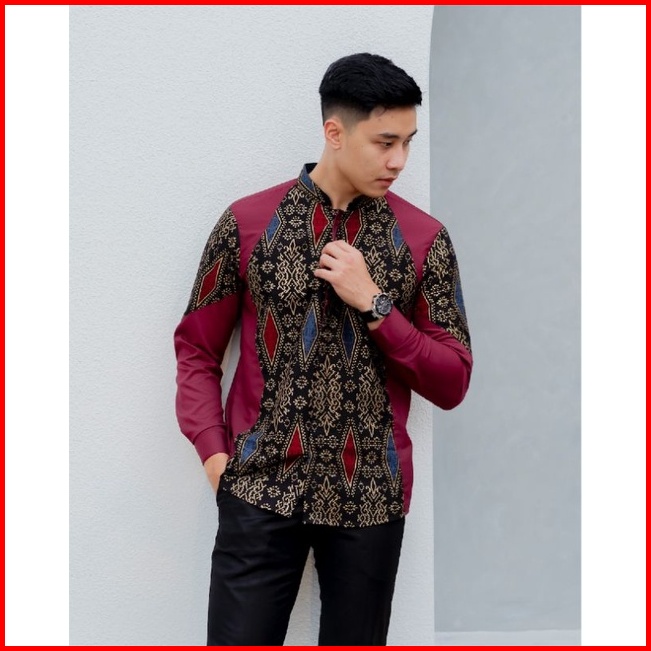 Kemeja Batik Pria Nuc.id Raden 02 Maroon-hitam