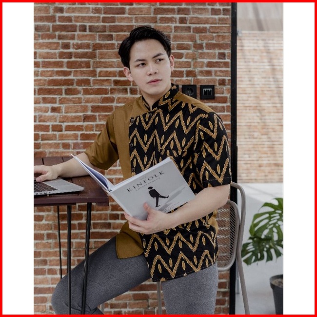Kemeja Batik Pria Nuc.id Kayana 02 Coklat Keemasan-hitam