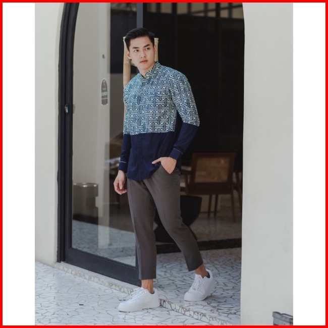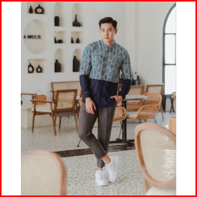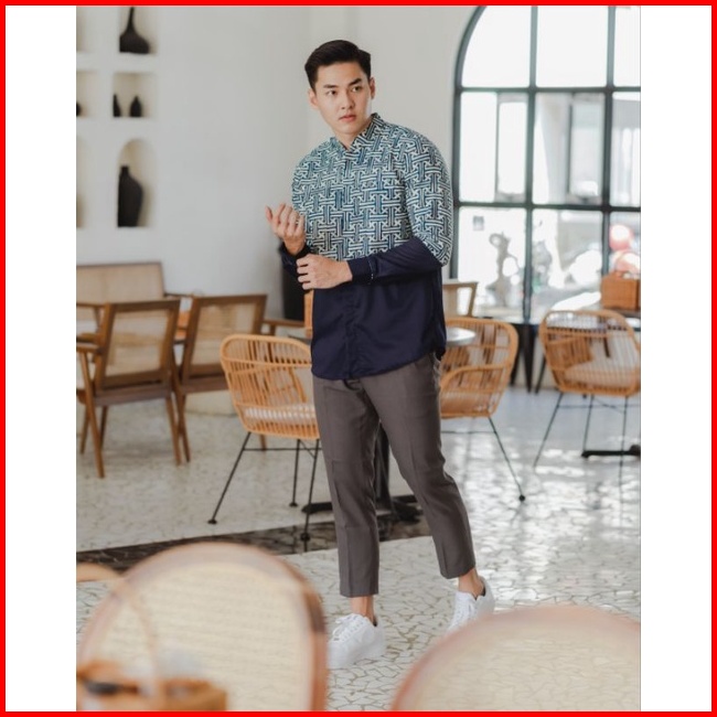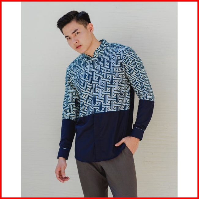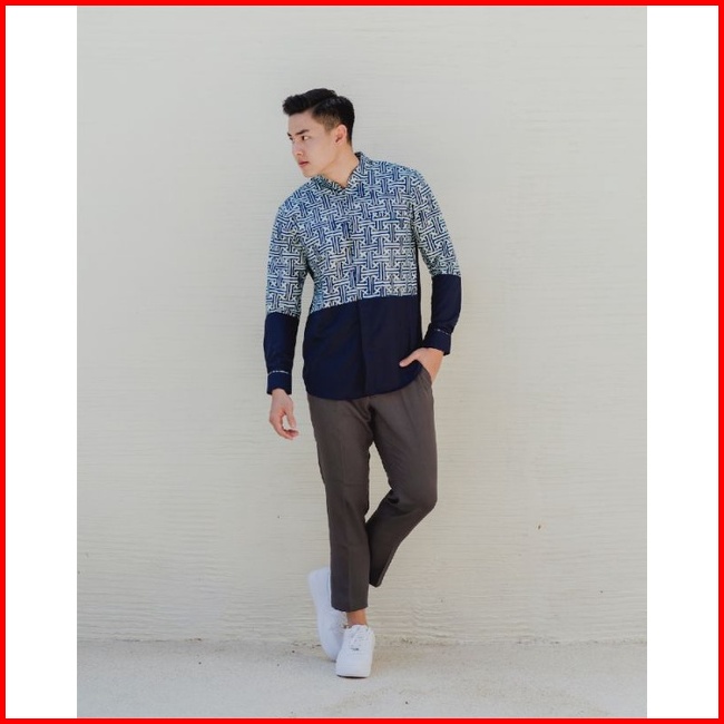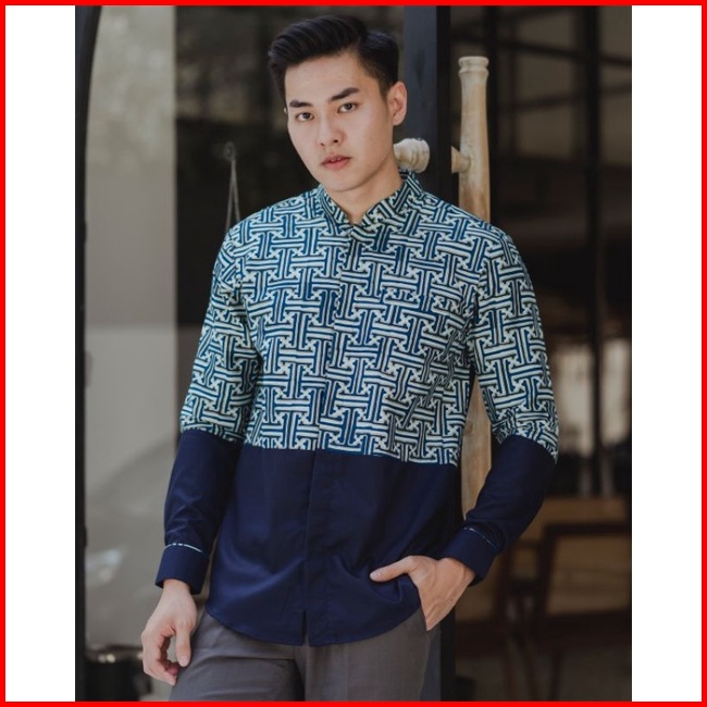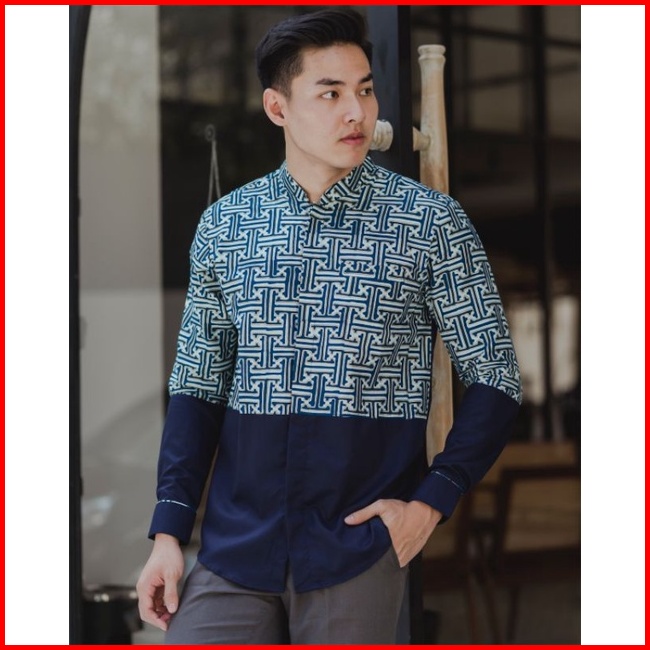 Kemeja Batik Pria Lengan Panjang Katun Navy