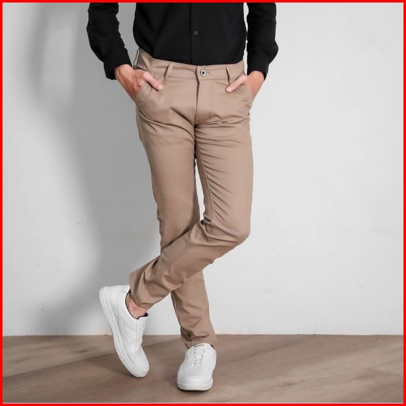 Celana Panjang Slimfit Chino Cino Chinos Pria Cowok Pensil - Krem Cream Abu Grey Hitam Black