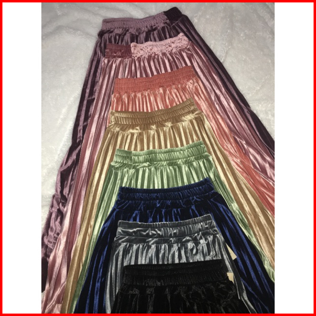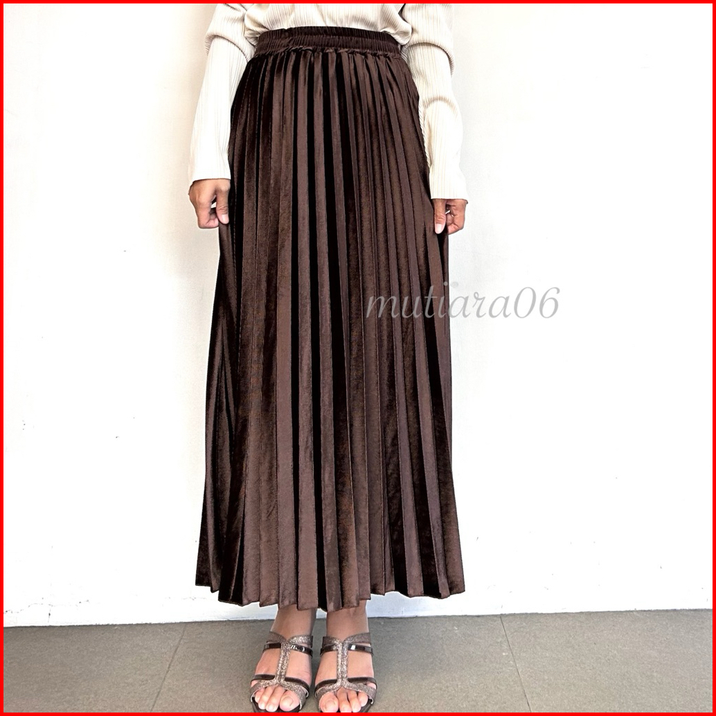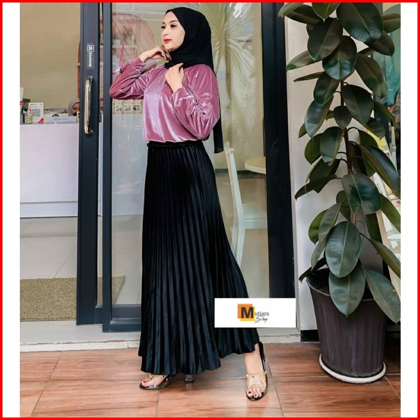 Rok Bludru Velvet Premium Panjang Mewah Plisket Bludru Mewah