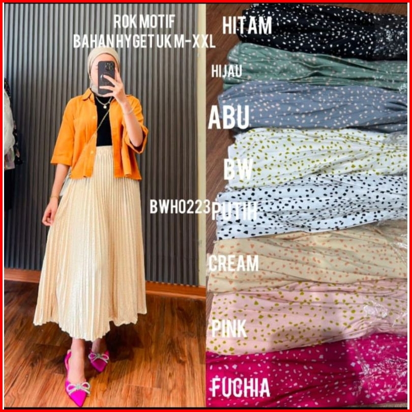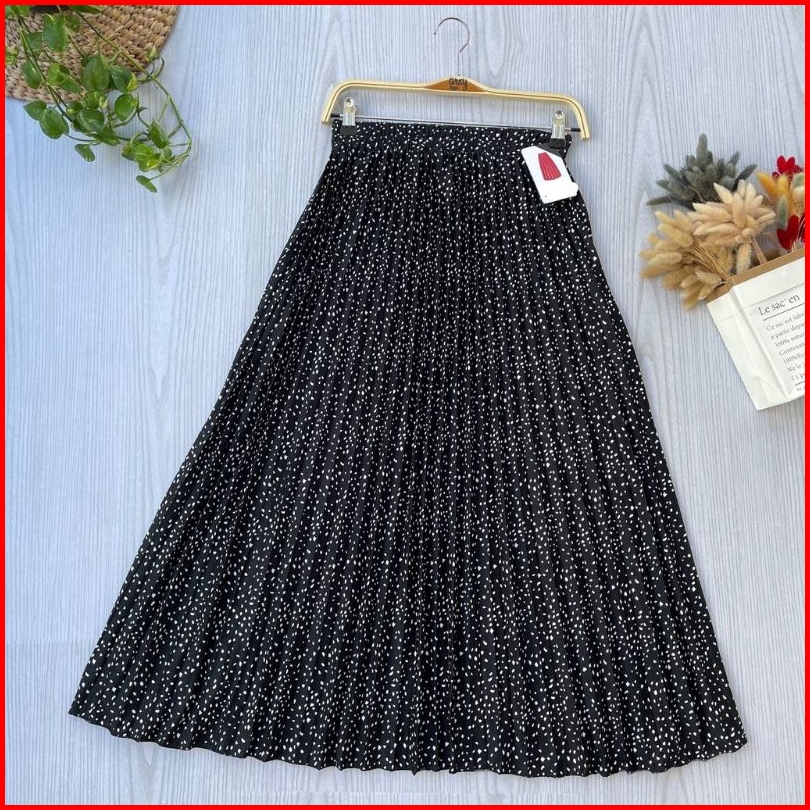 Rok Plisket Wanita Motif Bintik Rok Plisket Premium
