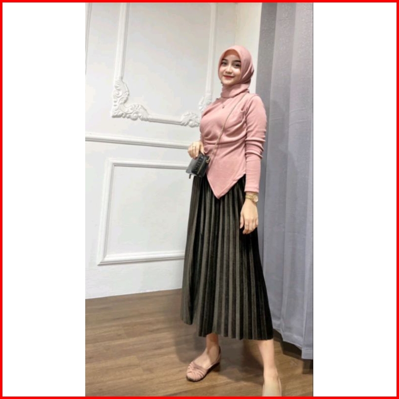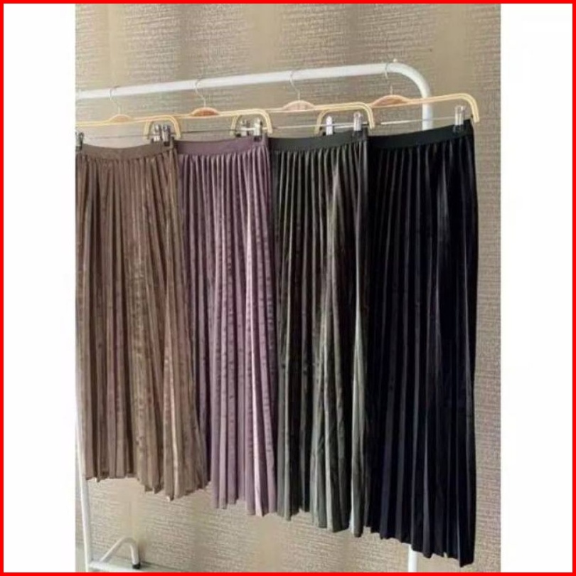 Aulia - Rok Bludru Velvet Plisket Premium 100 Asli Import