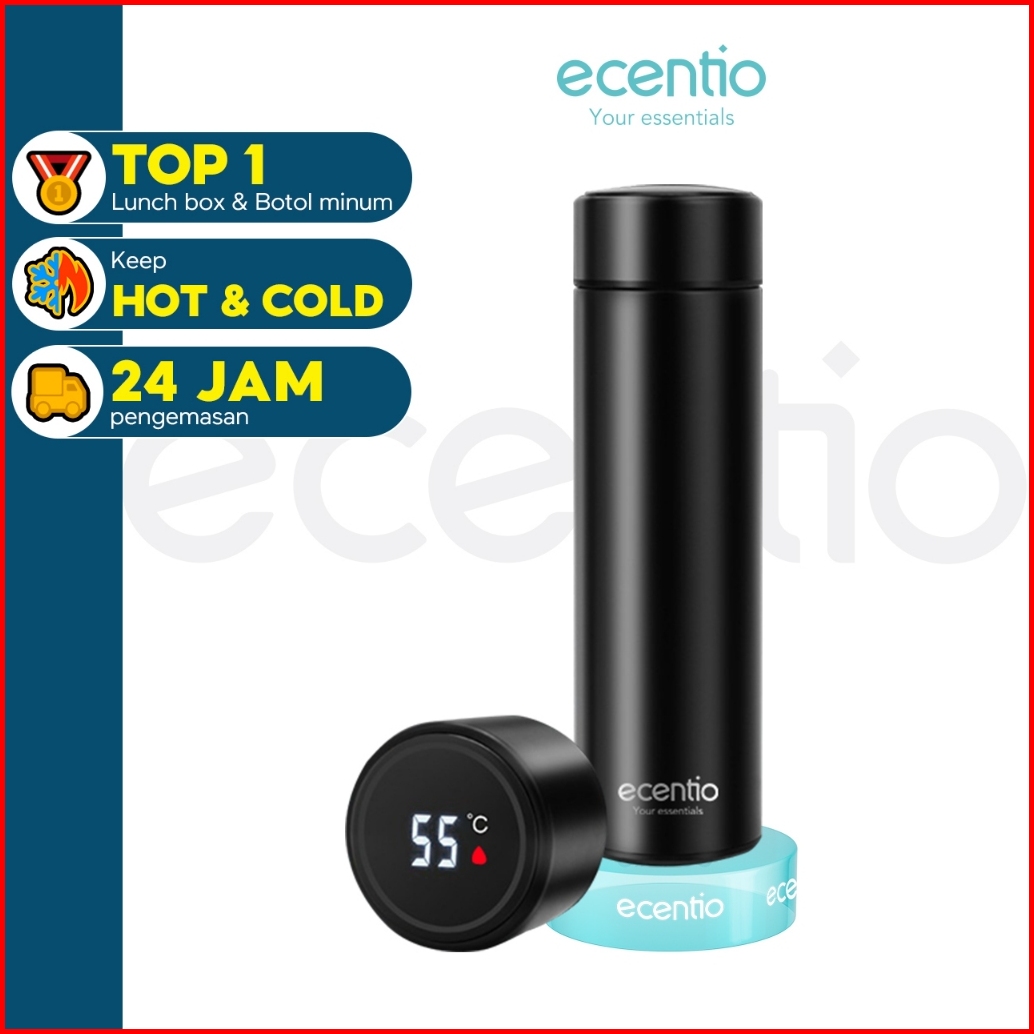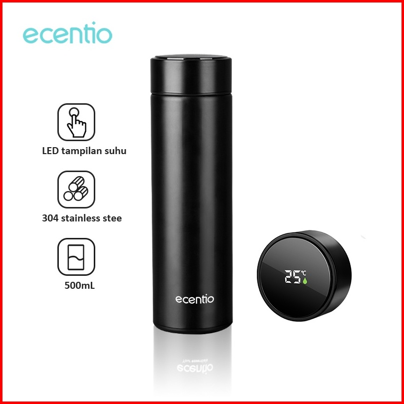 Ecentio Termos Air Panas 304 Stainless Vacuum Flask Botol 500ml Led Display Tumbler Cerdas Led Suhu