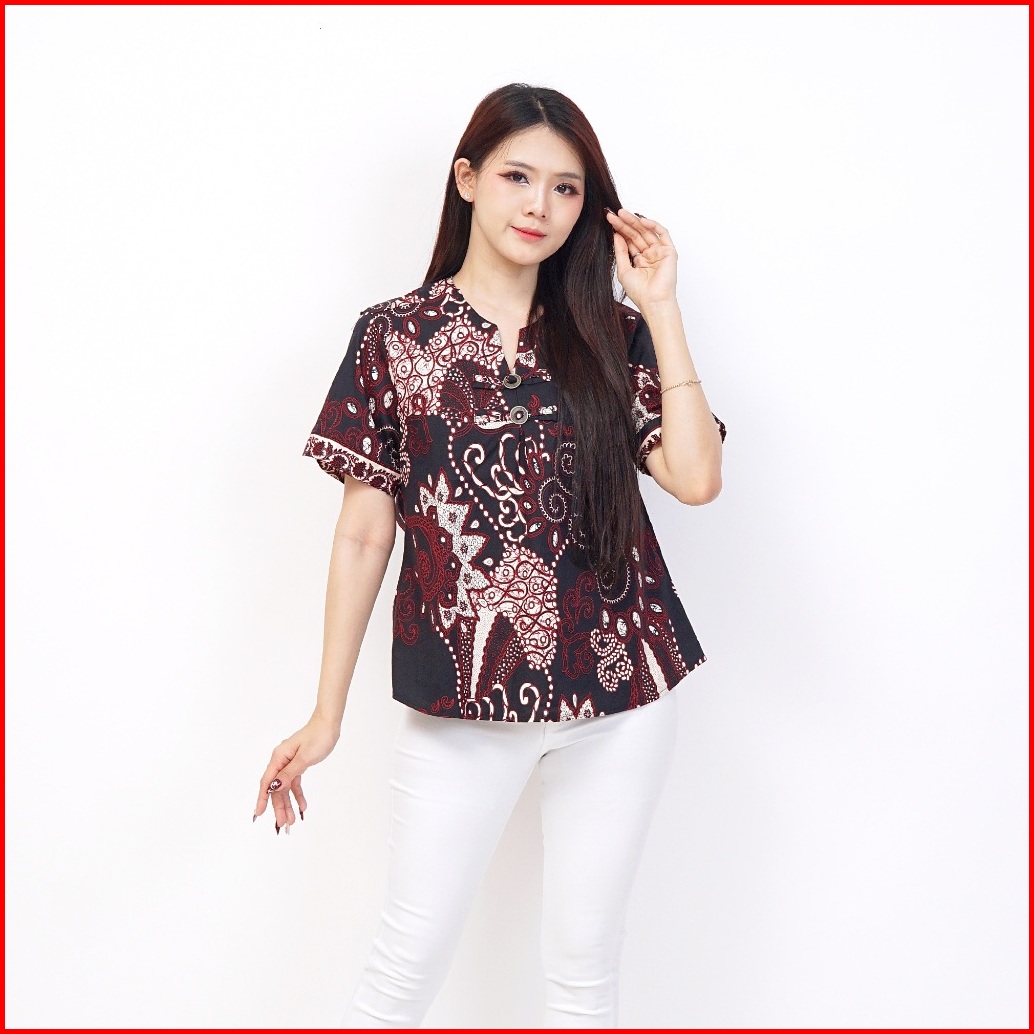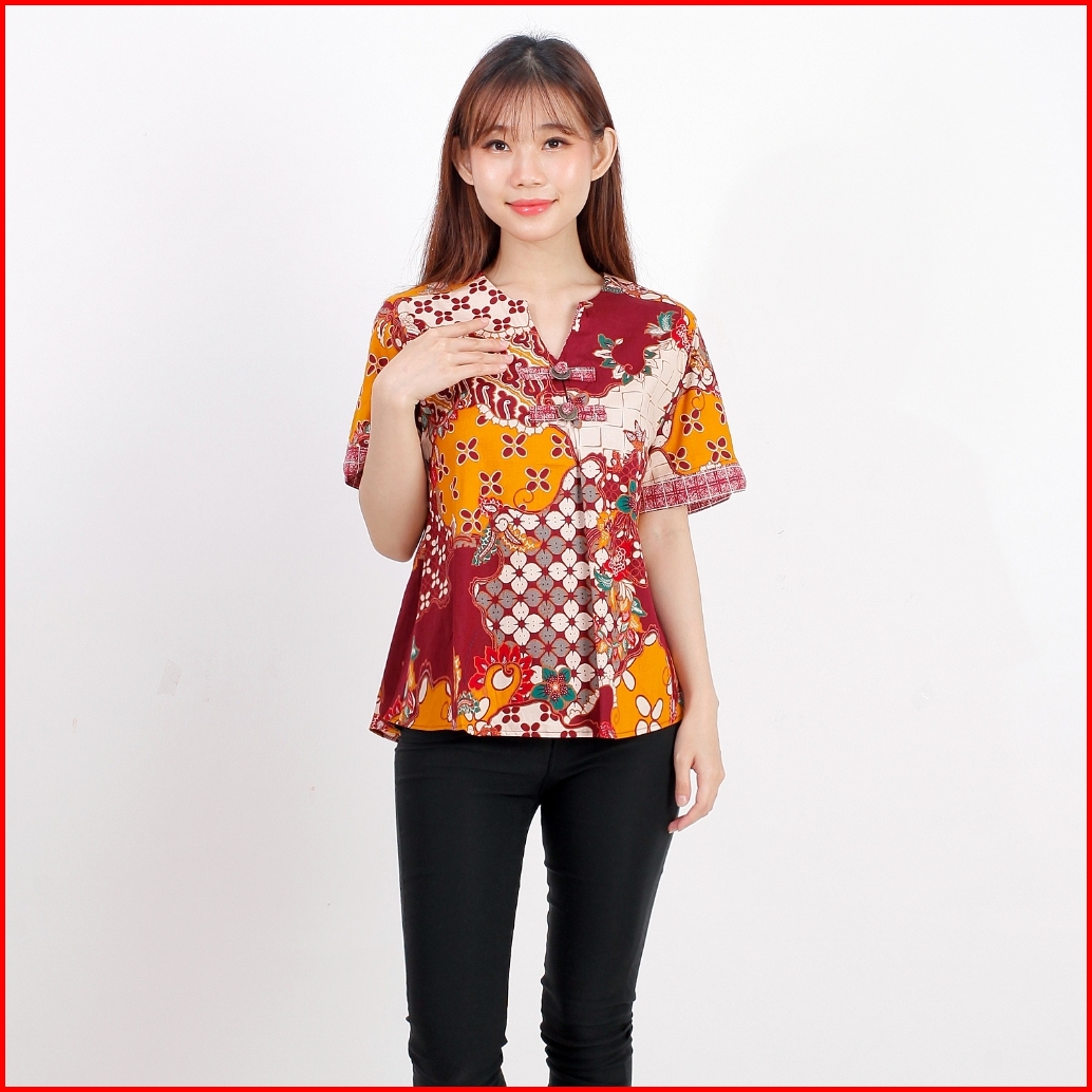 Atasan Batik Blouse Wanita Katun Stretch Adem