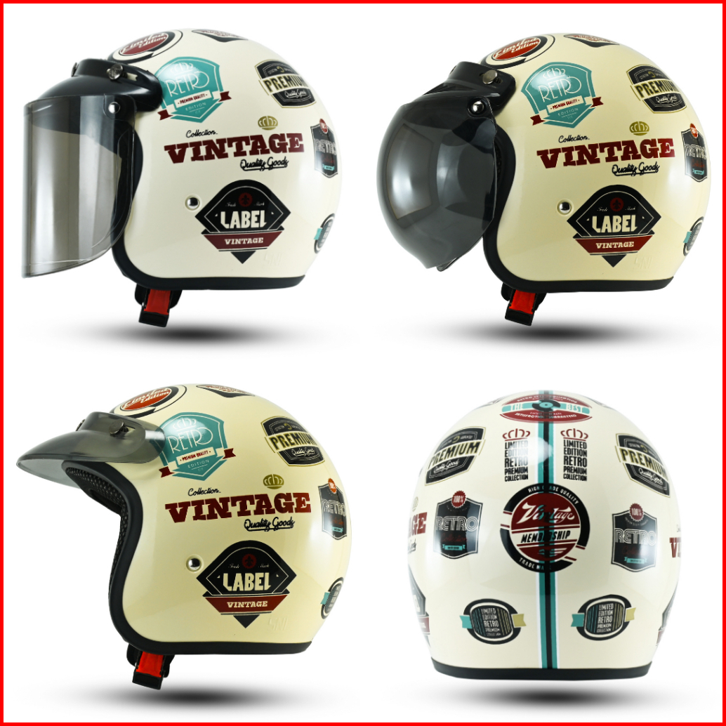 Helm Cowok Keren Bogo Dewasa Retro Sni Motif Retro Vintage