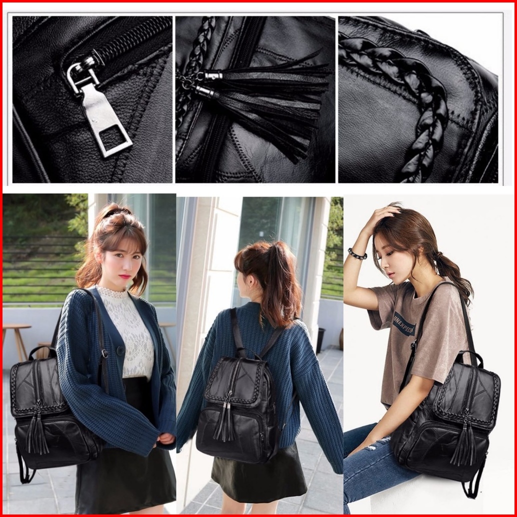 Tas Ransel Wanita Kulit Backpack Premium Hitam Kajesa Ta550b5 Cewek Korea Punggung Gendong Sekolah Kuliah Kerja Batam Br