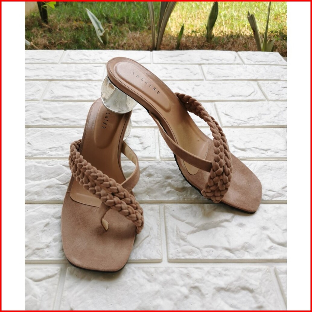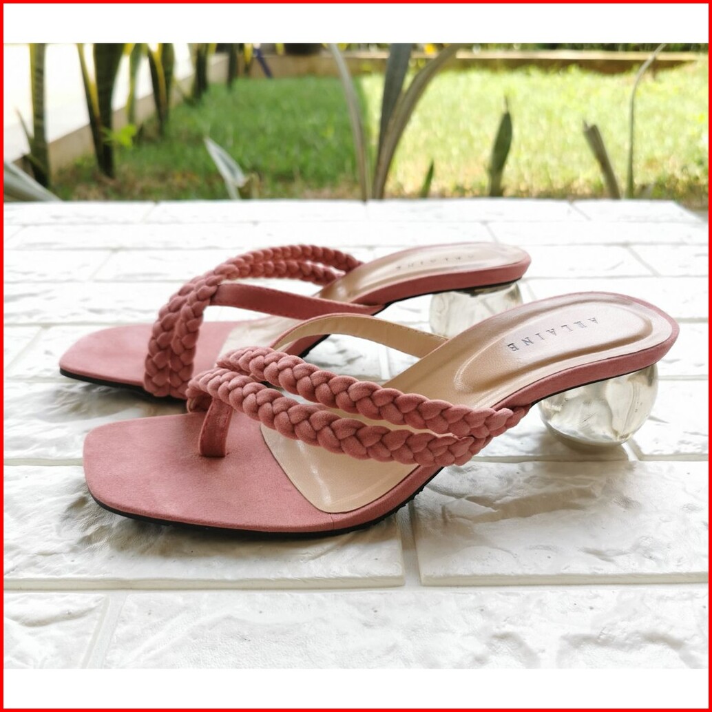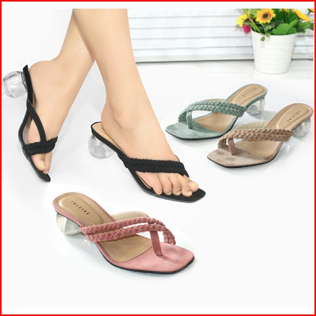 Arlaine-monica Sandal Heels Hak Kaca Bulat Beludru