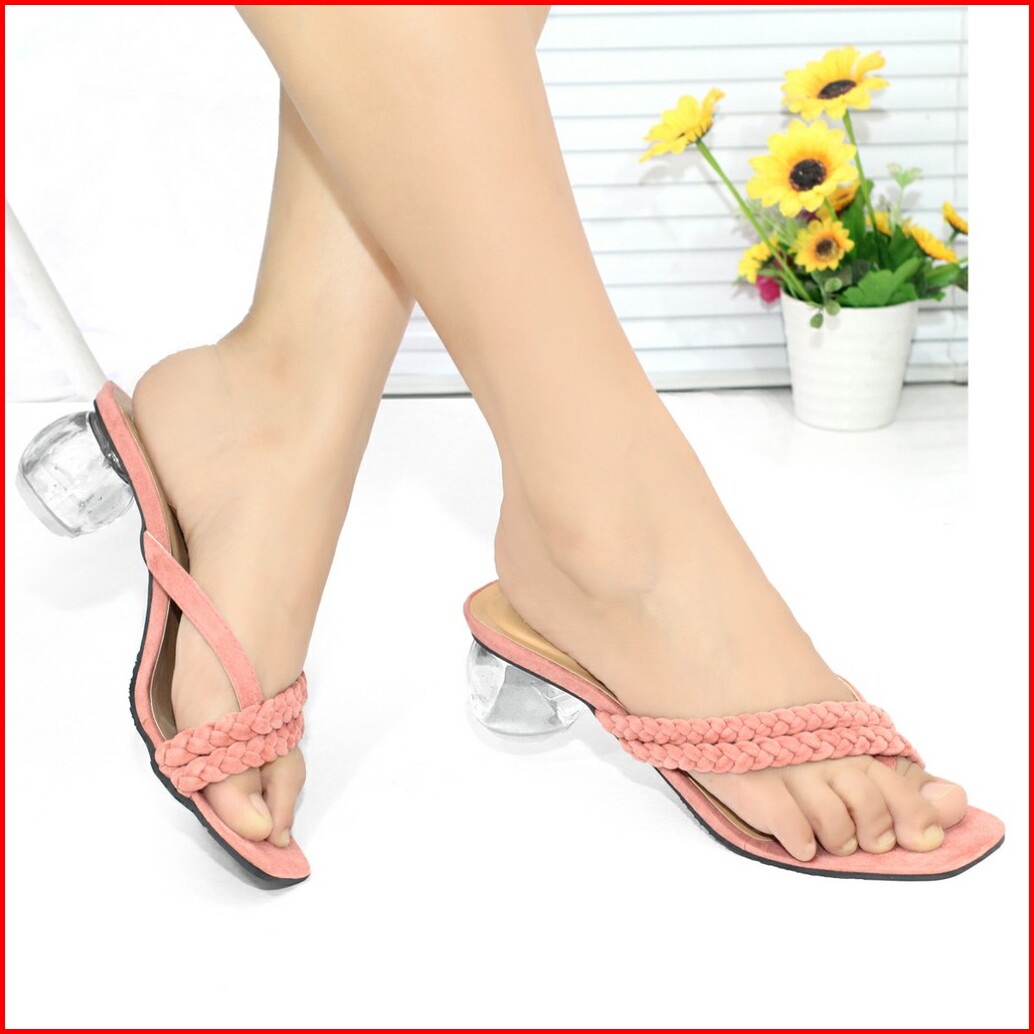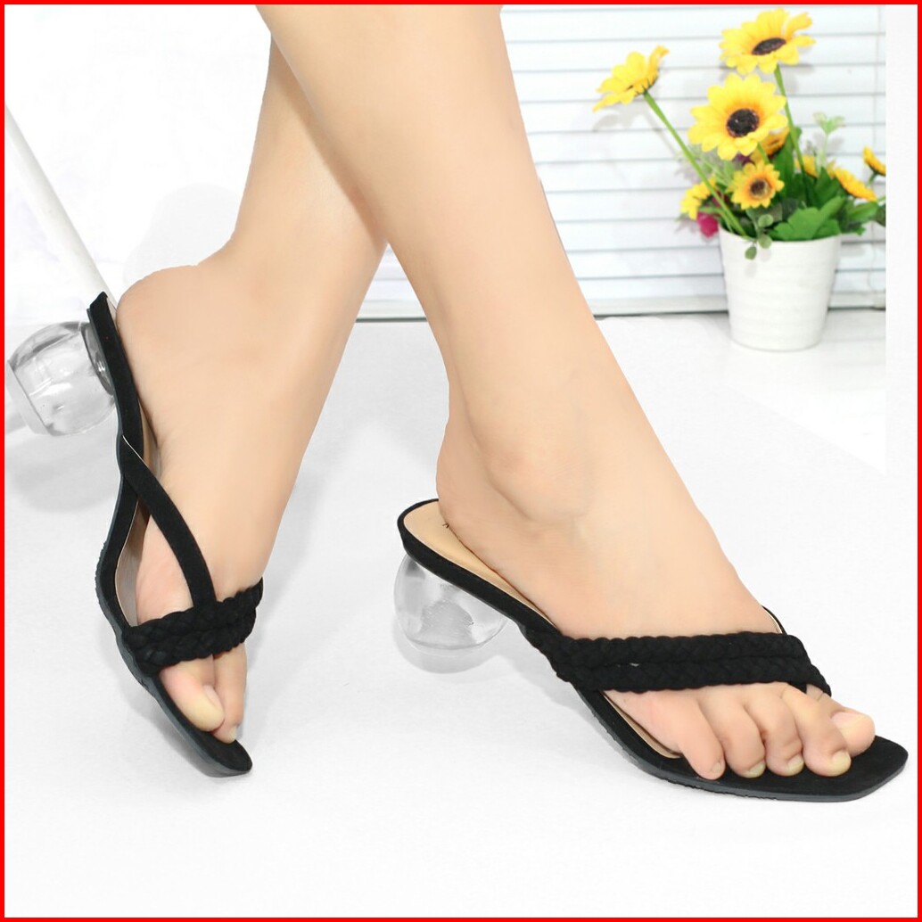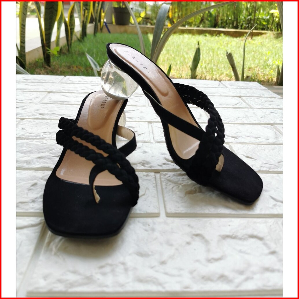 Arlaine-monica Sandal Heels Hak Kaca Bulat Beludru