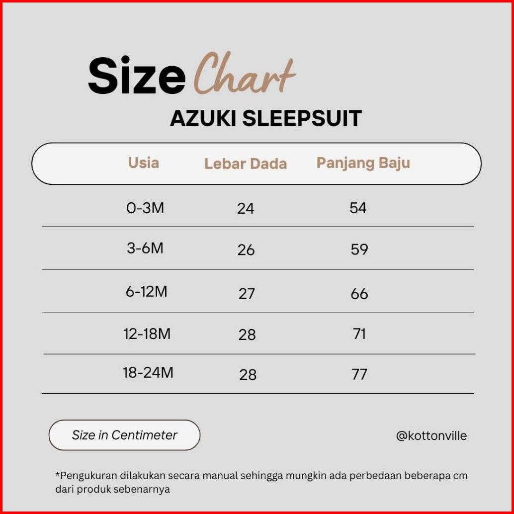 Kottonville - Setelan Baju Tidur Piyama Anak Bayi Essentials Azuki Zipper Sleepsuits 0-2 Yrs Laki-laki Dan Perempuan