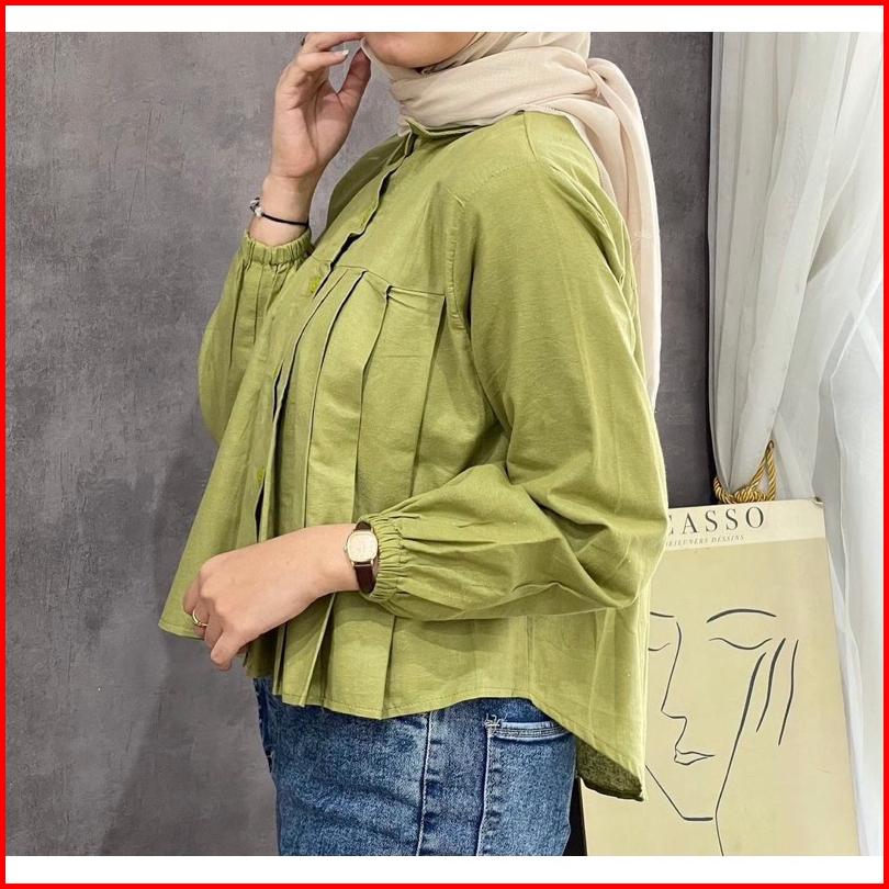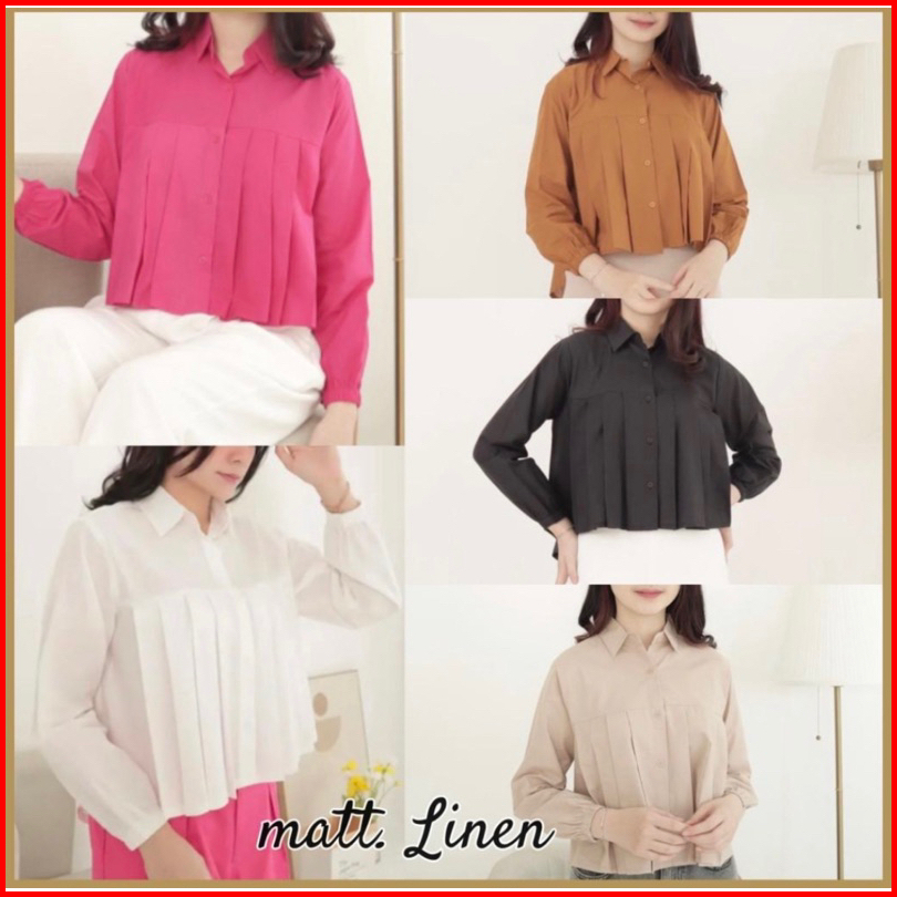 Herra Blouse Crop Linen Blouse Lipit Depan