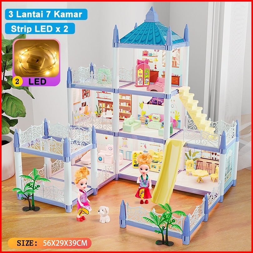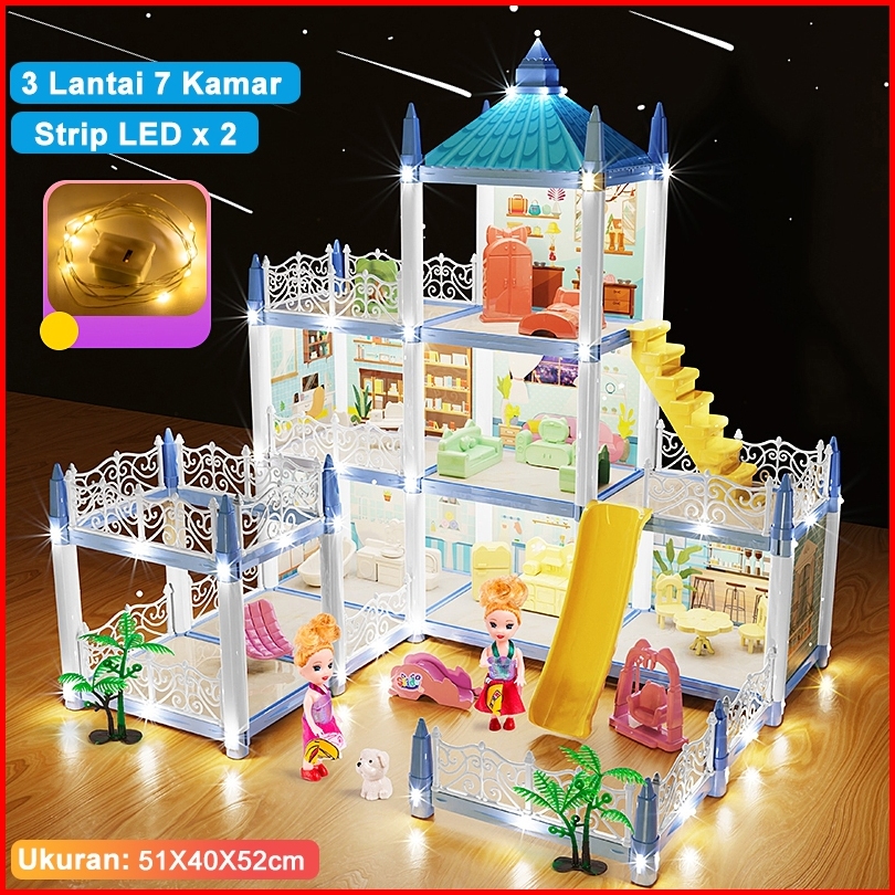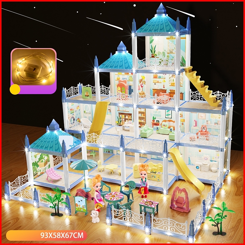 3d Princess Big Villa Diy Rumah Boneka Pink Castle Bermain Rumah Dengan Slide Yard Kit Dirakit Rumah Boneka Mainan Anak