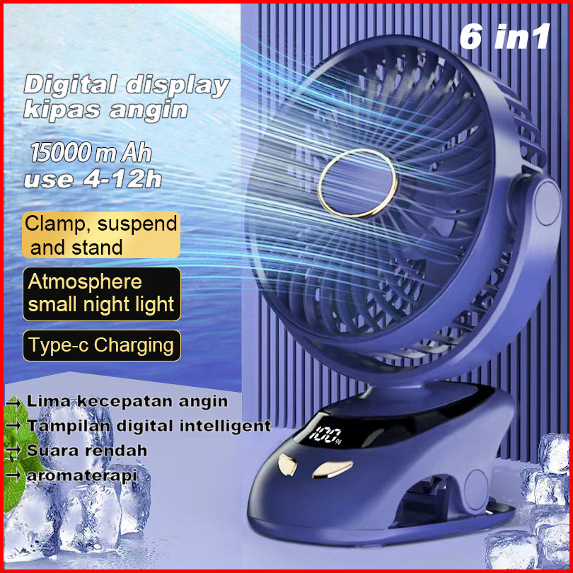 15000mah Kipas Angin Usb Clip Mini Fan Rotating Kipas Angin Meja Mini Jepit Portable Led Display Portable Fan Aromaterap
