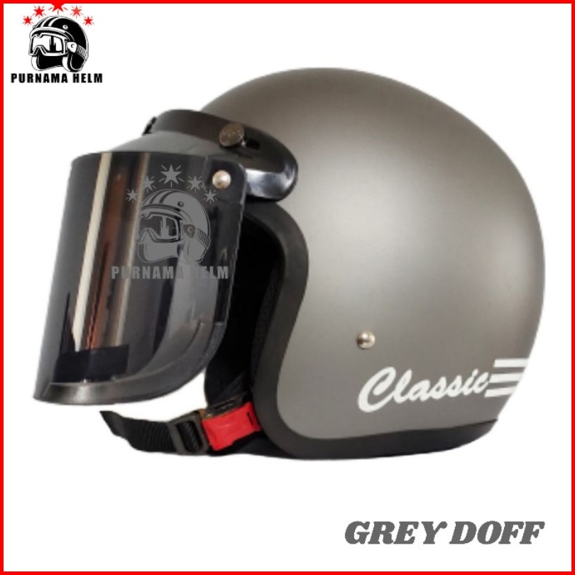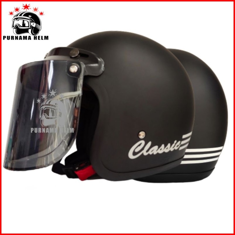 Helm Bogo Classic Garis Tiga Helm Bogo Pria Wanita Helm Bogo Dewasa Sni Murah Polos Kaca Datar Flat
