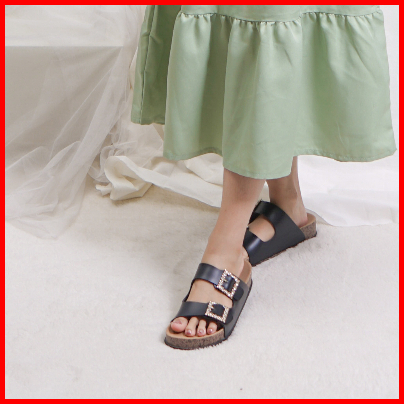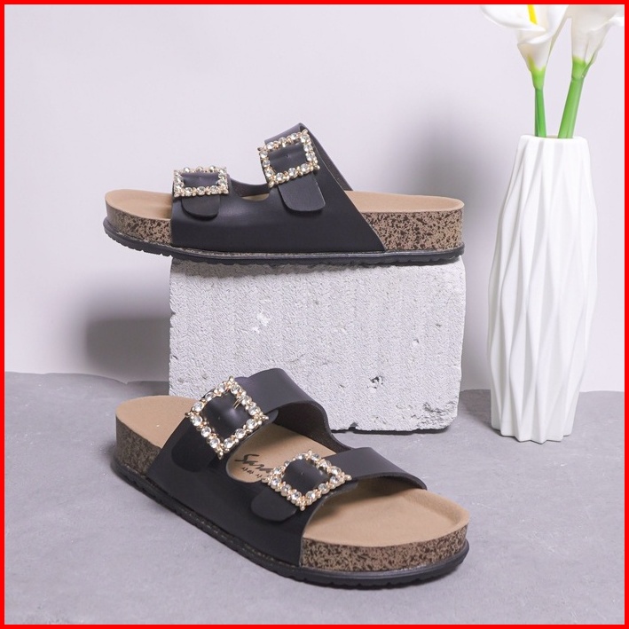 Sara Sara Kimmy Sandal Wanita Flat Gesper Berlian