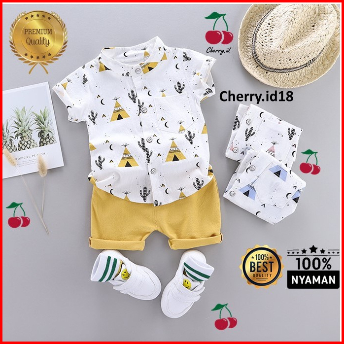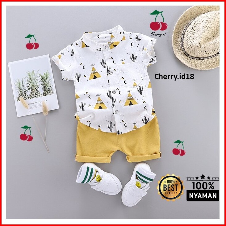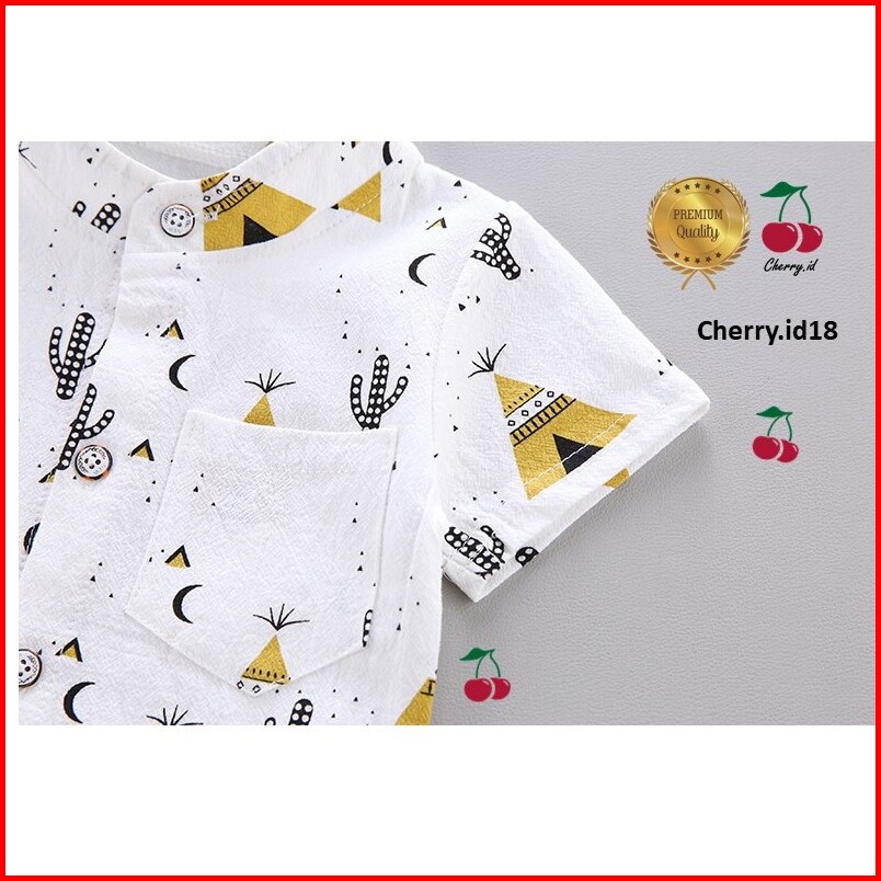 Promo Puncak 9.9 Cherry Setelan Kemeja Anak Laki Laki Motif Printing Setelan Kemeja Anak Import - Motif Piramida Kb06