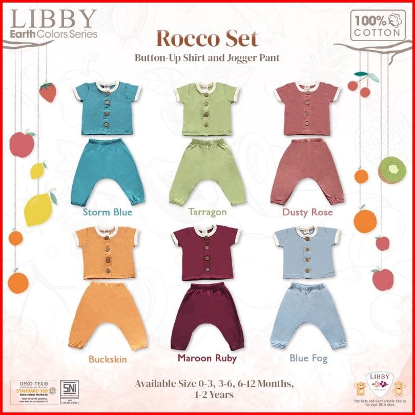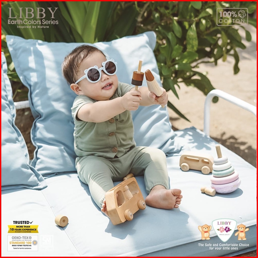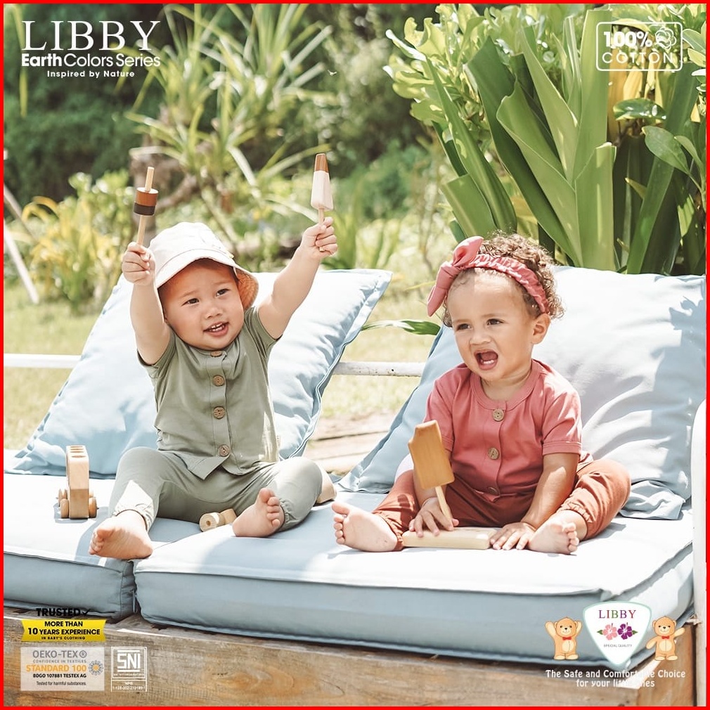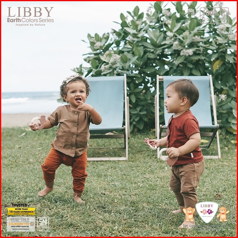 Libby Earth Rocco Set Baju Pendek Celana Panjang 0-2 Tahun Newborn Kado Bayi Baju Bayi