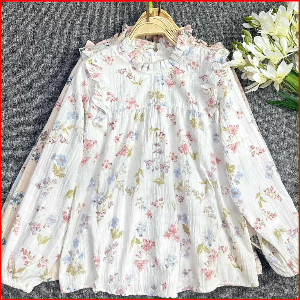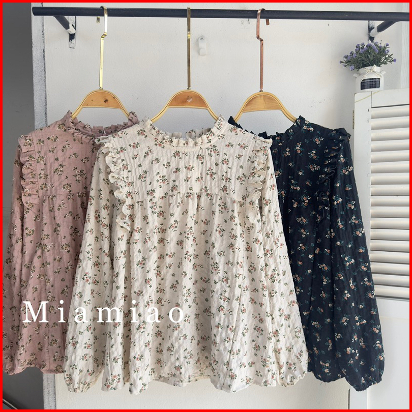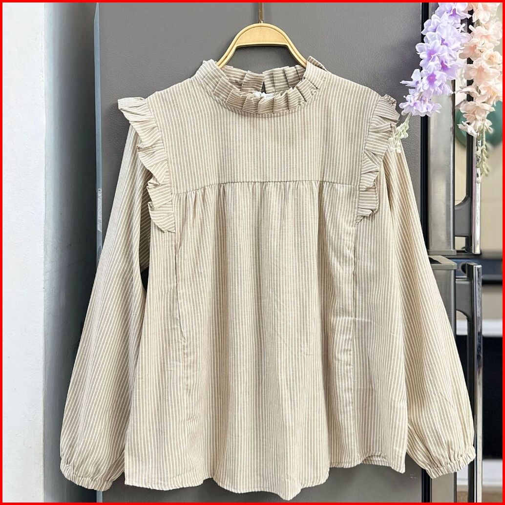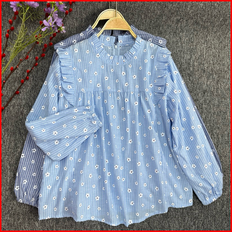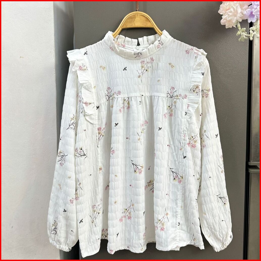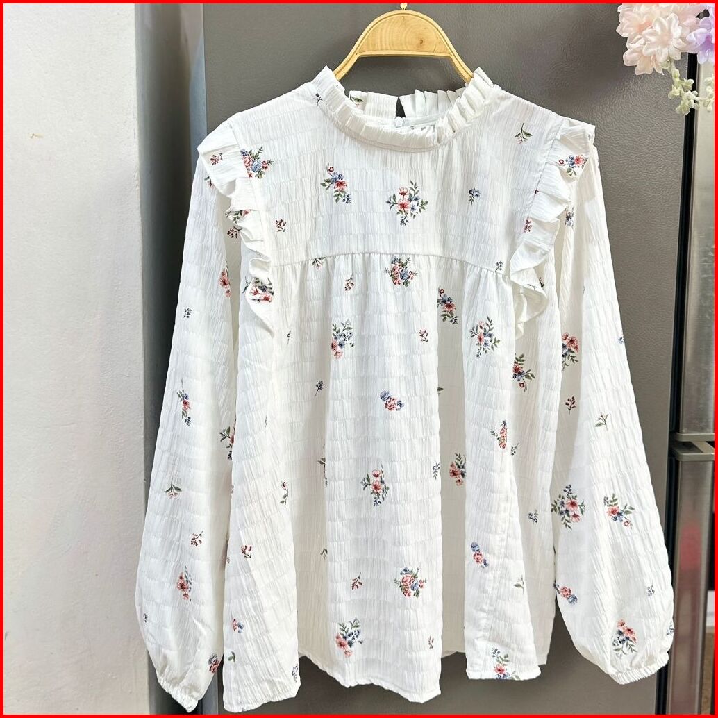 Blouse Ruffle Flowers Korean Style Baju Atasan Wanita Kekinian Fashion Muslim