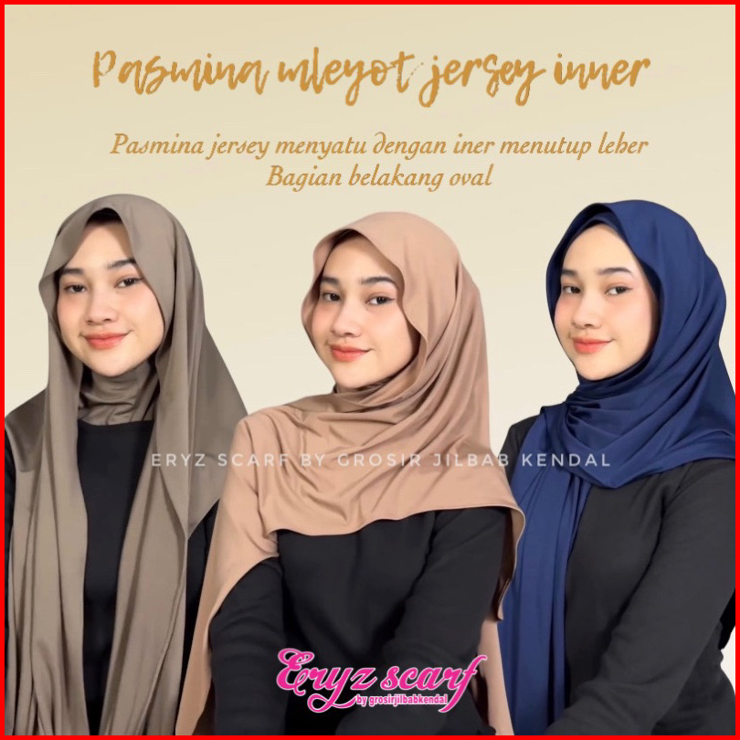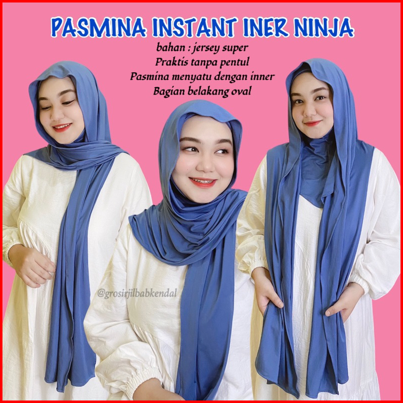 - Pashmina Inner Leher Daleman Ninja Bahan Kaos Jersey Hijab Meleyot Oval