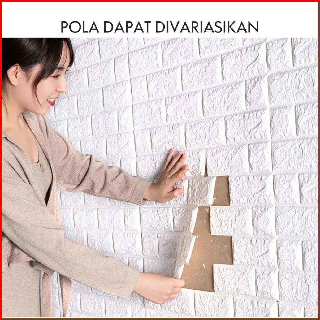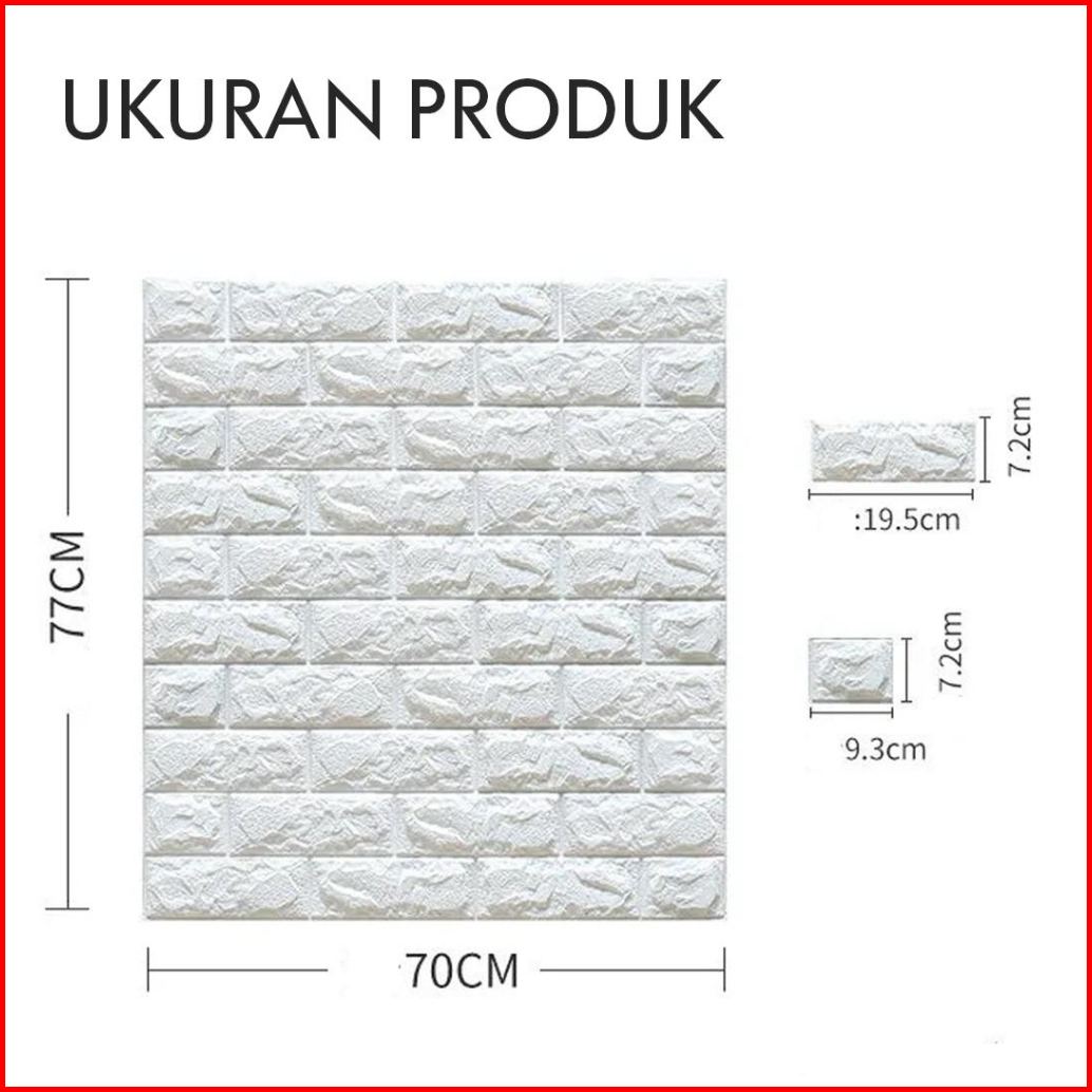 Hoptech - Paket 10 Pcs Wallpaper Dinding 3d Foam Bata Timbul 3d Bata Classic Brick Putih 70x77cm
