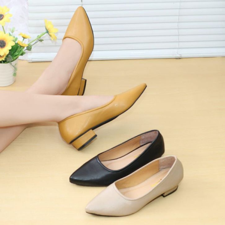 Sepatu Pantopel Wanita Hitam Polos Kerja Hak 3cm Sapatu Pantofel Velcro Ujung Lancip Best Seller Termurah Raa Shoes