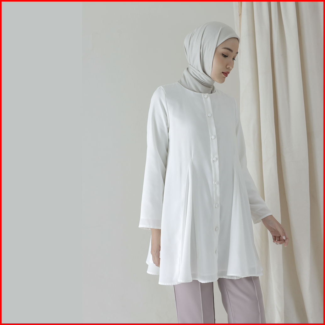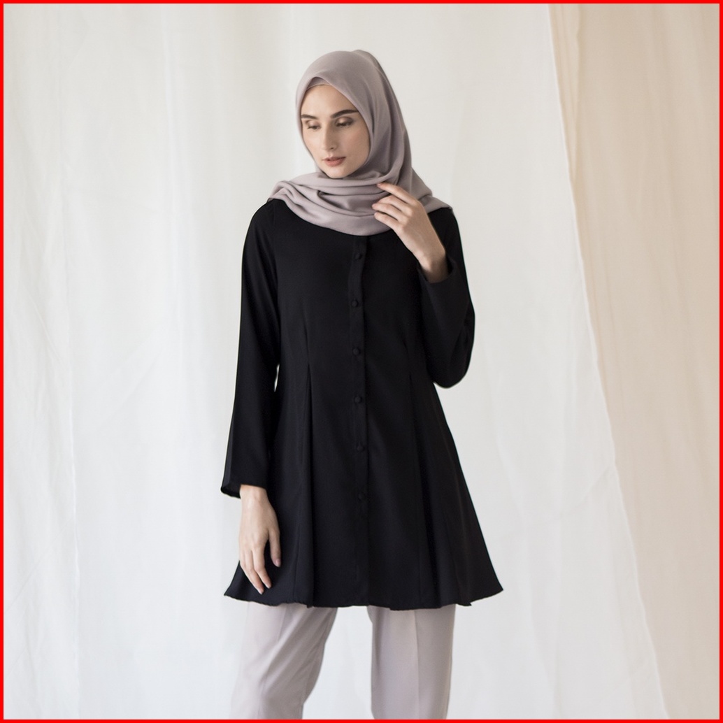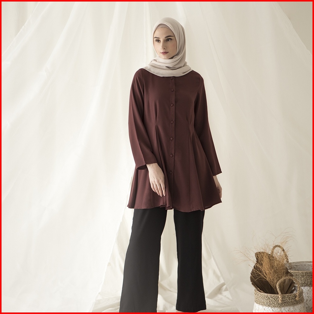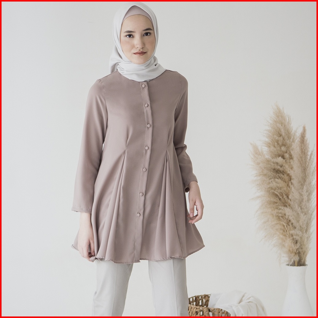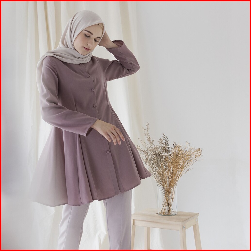 Wiyana By Aska Label - Basic Blouse Wanita Muslim Full Kancing Warna Lilac Navy Taupe Light Moss Olive Deep Cranberry