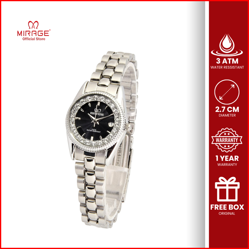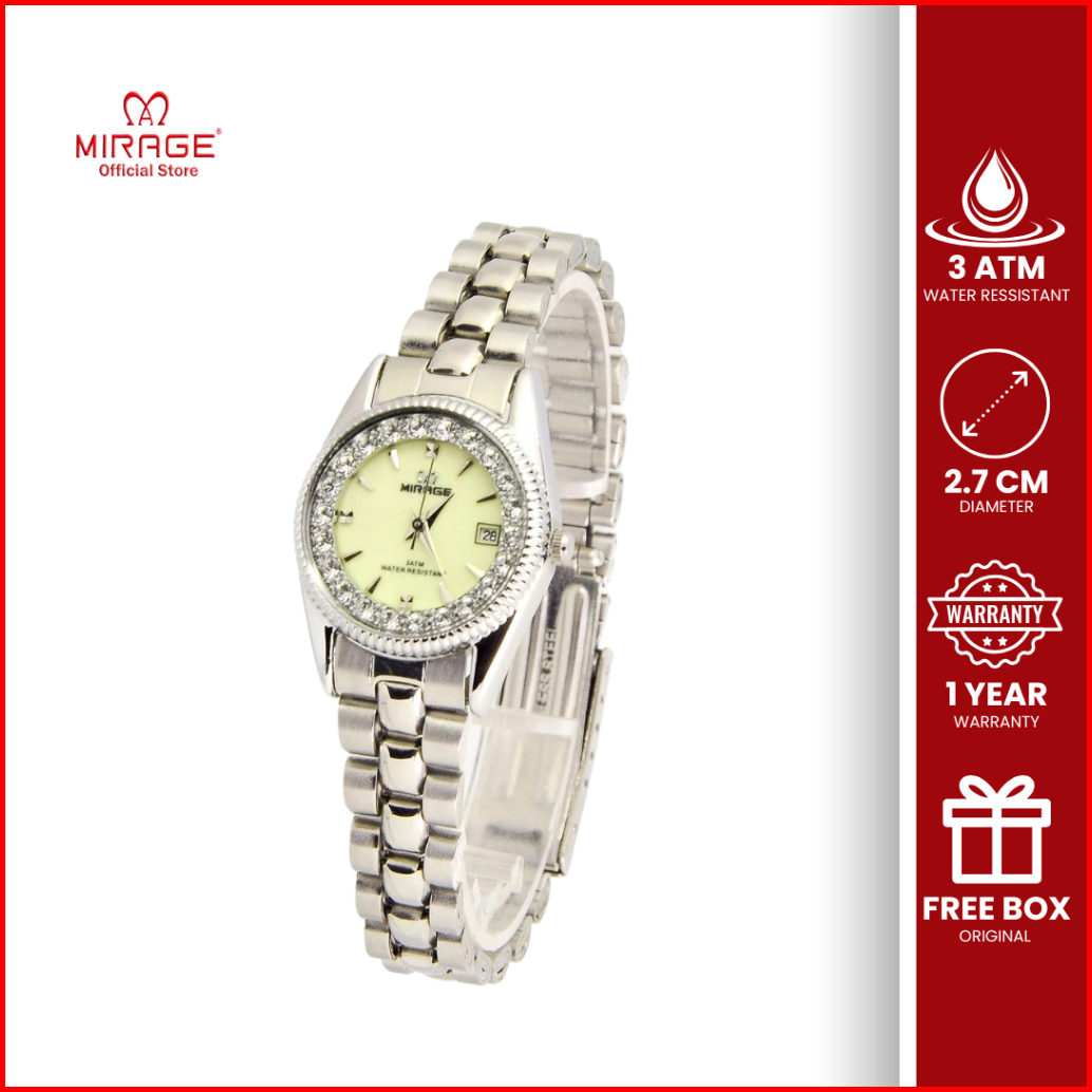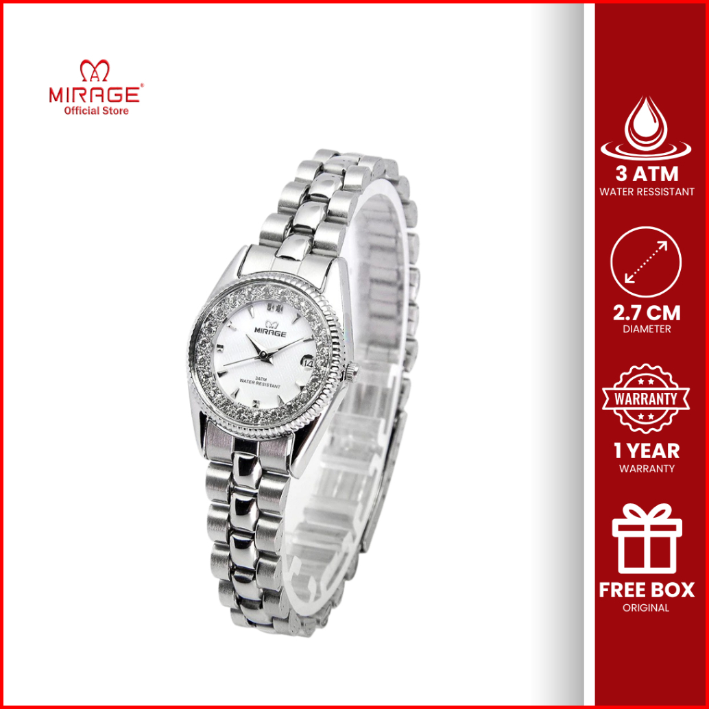 Mirage Jam Tangan Analog Wanita Permata Original Silver Rx 1580 L Tahan Air 3atm Garansi 1 Tahun