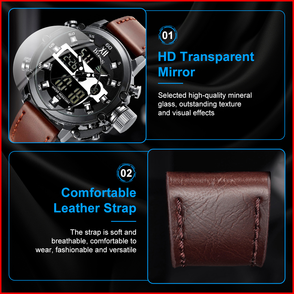 Biden Jam Tangan Pria Olahraga Militer Analog Digital Tali Tali Kulit Anti Air Kuarsa Jam Tangan Cowok Original