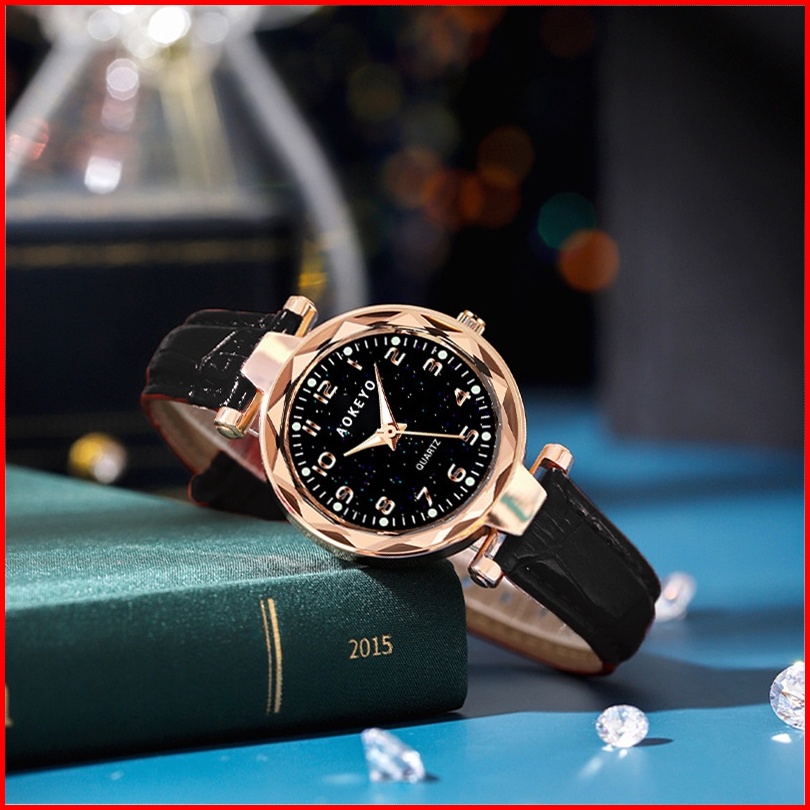 Aokeyo W157 Jam Tangan Wanita Original Santai Tahan Air Langit Berbintang Hitam Modis Jam Tangan Wanita Free Box Kartu G