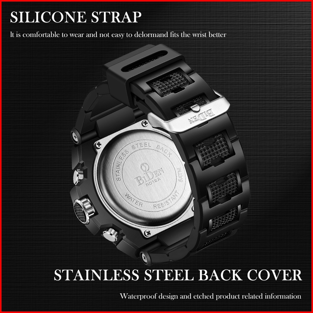 Biden Jam Tangan Pria Digital Anti Air Original Multifungsi Bercahaya Alarm Tali Silikon Jam Tangan Cowok
