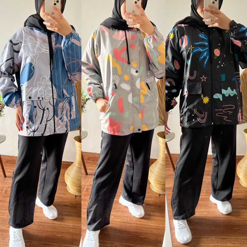 JAKET PARASUT PRINTING WANITA ANTI AIR WATERPROOF