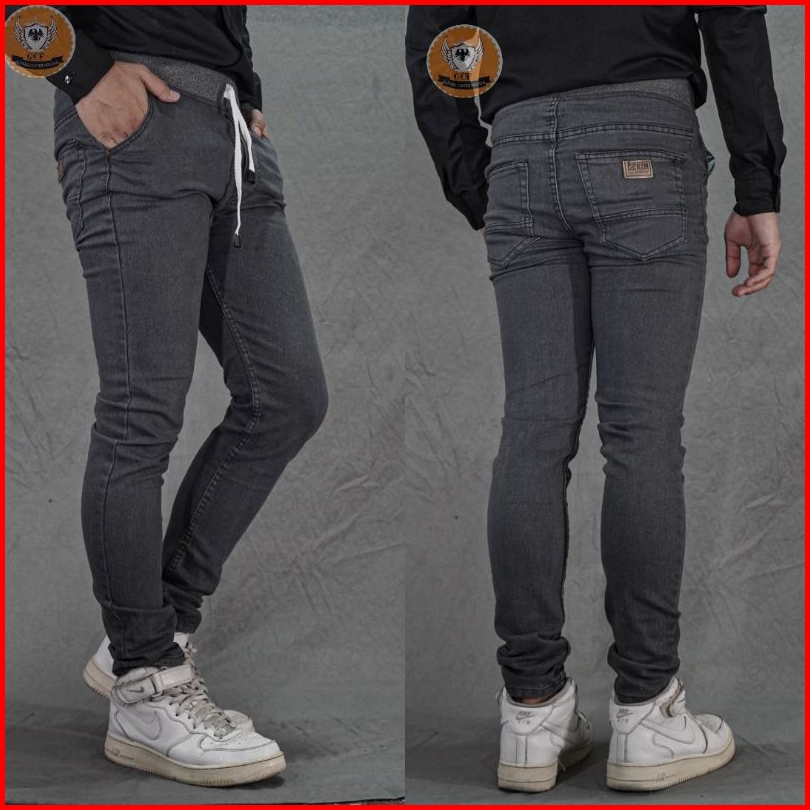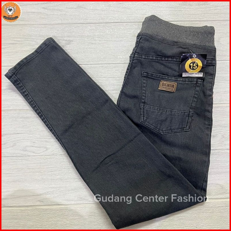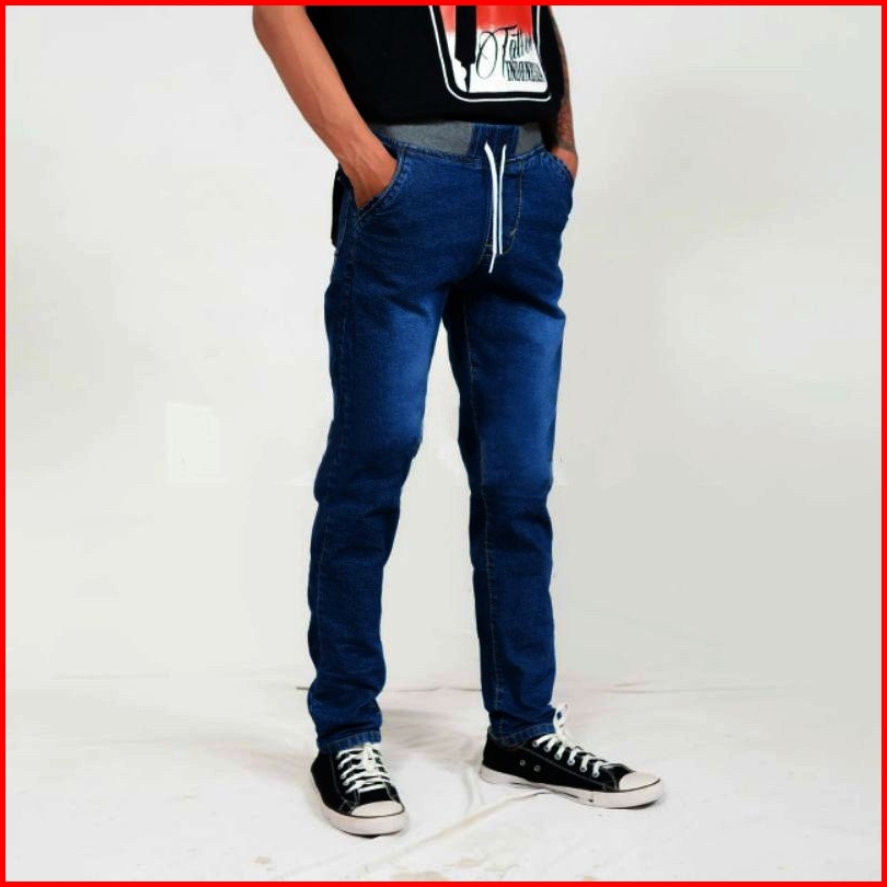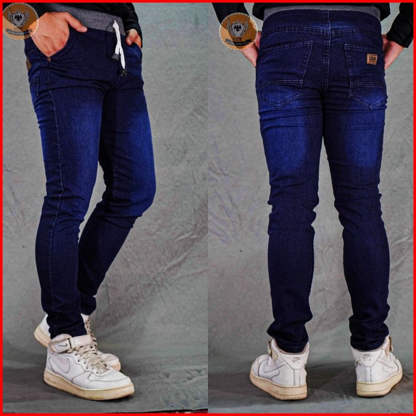 Celana Panjang Cowok Slim Fit Jeans Pinggang Karet Feil