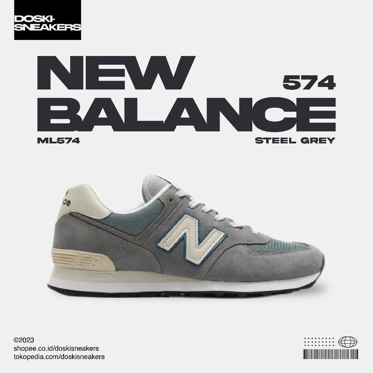 New Balance ML574 574 Steel Grey Original BNIB Sneakers Casual Pria Wanita Sepatu Ori Murah Sepatu Sneakers
