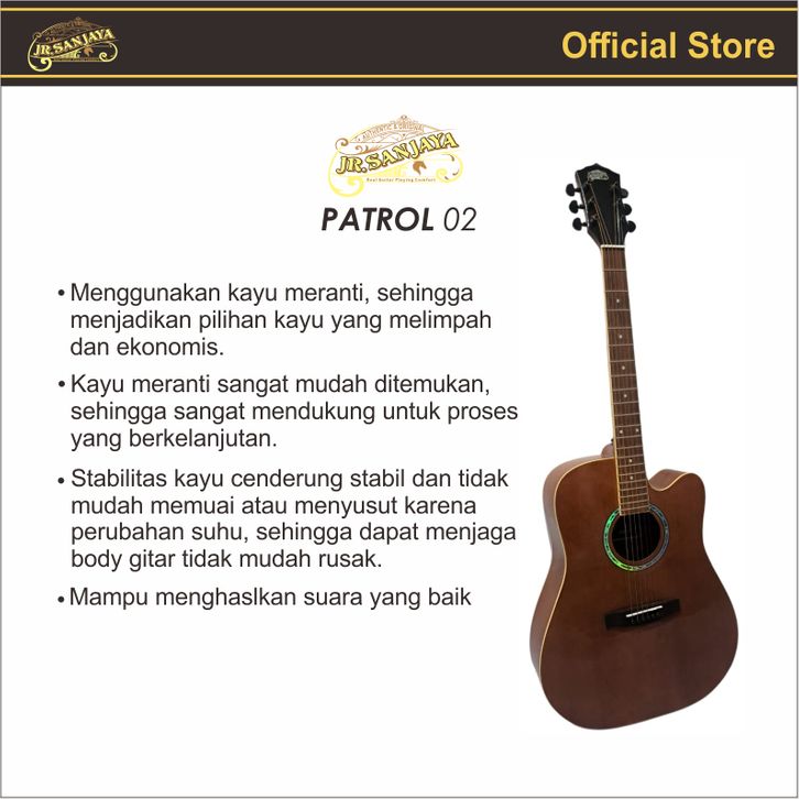 GITAR AKUSTIK ELECTRIK ORIGINAL JR.SANJAYA PATROL 02 TANAM BESI GRATIS PACKING KAYU