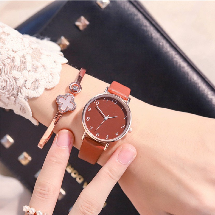 JAM TANGAN GAYA STRAP PU LEATHER POLOS ANALOG QUARTZ FASHION WANITA WATCH CASUAL