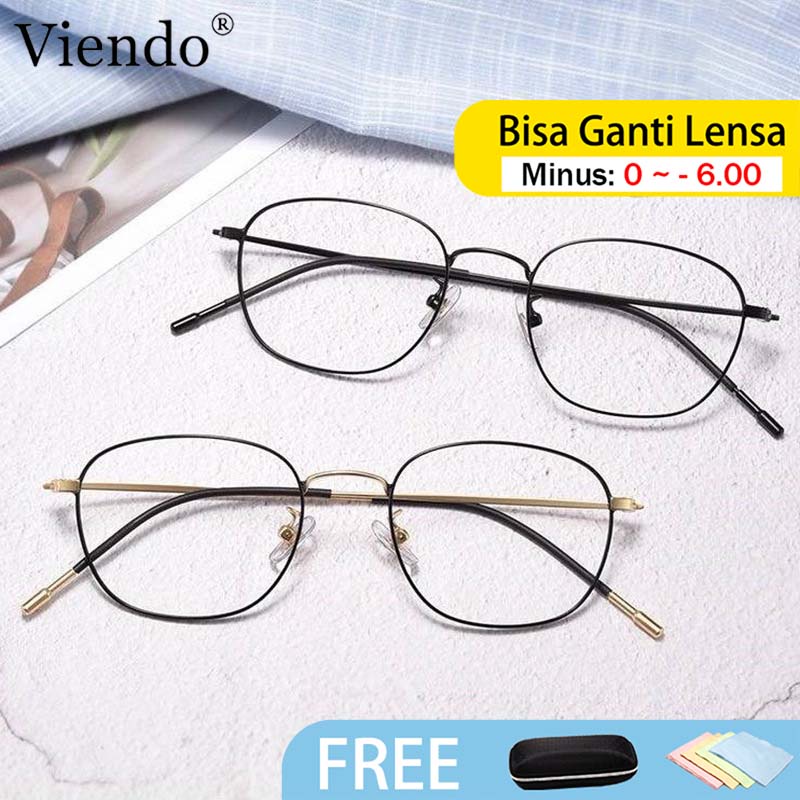VIENDO FRAME KACAMATA MINUS PHOTOCROMIC WANITA PRIA -1/-6 BESI ANTI SINAR MATAHARI UV400 KACA MATA OPTIK