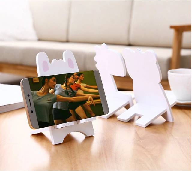 STAND HOLDER HANDPHONE / TABLET DESAIN KARTUN HEWAN BAHAN KAYU
