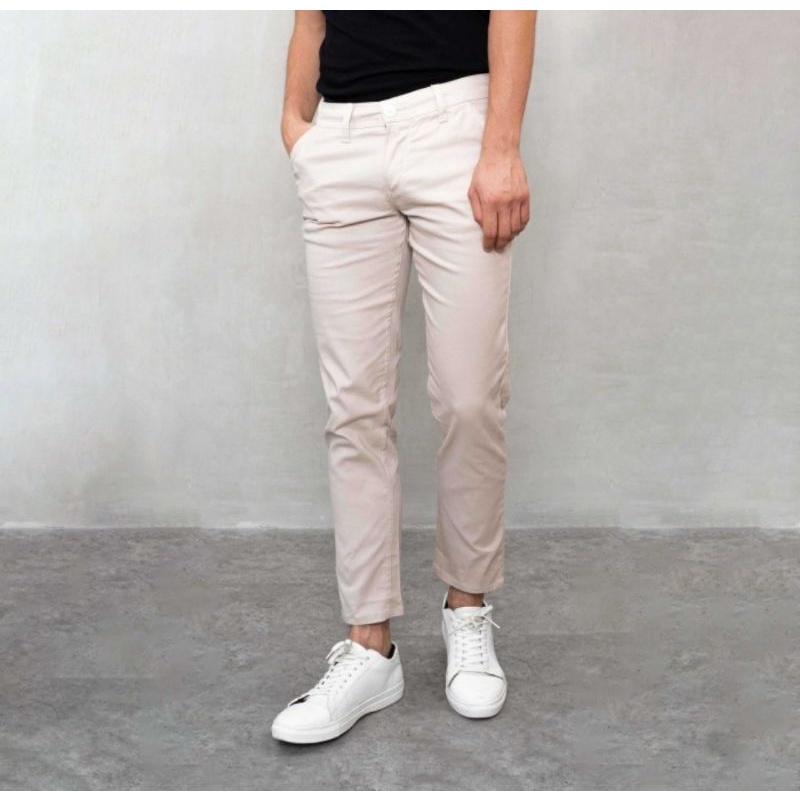 CELANA CHINO PANJANG PRIA SLIMFIT KERJAHARIAN SANTAI CASUAL FORMAL HITAM ABU