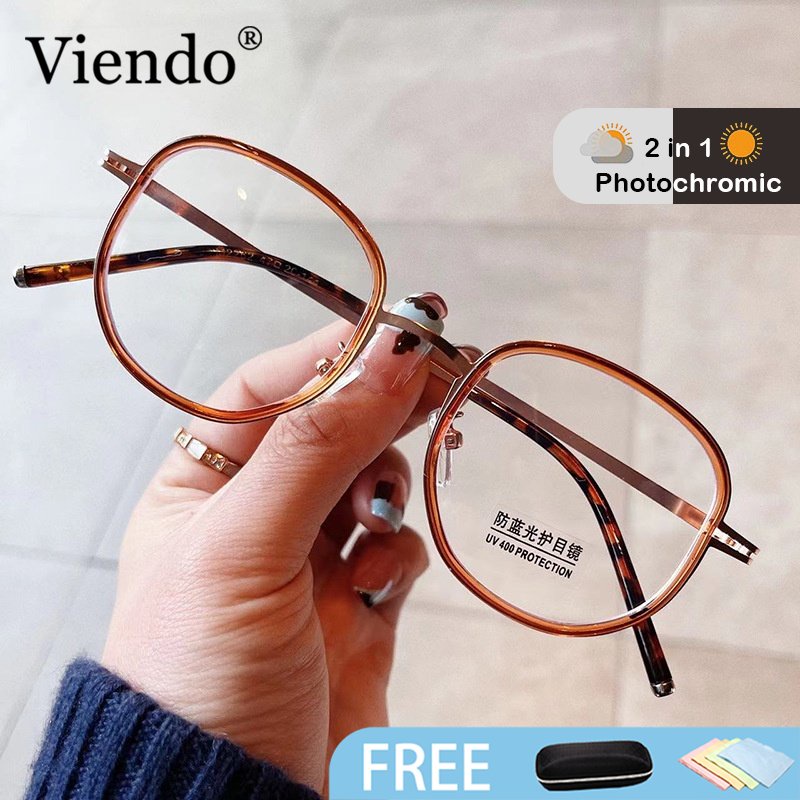 VIENDO KACAMATA ANTI RADIASI BLUERAY PHOTOCROMIC WANITA PRIA BESI OVAL FRAME 2 IN 1 BLUECROMIC POTOCROMIC