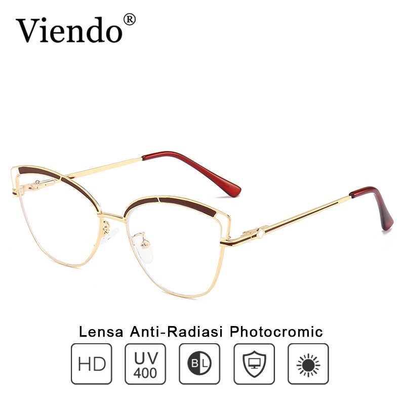 VIENDO KACAMATA PHOTOCROMIC ANTI RADIASI BLUERAY WANITA FASHION CAT EYE BESI FRAME 2 IN 1 BLUECROMIC POTOCROMIC