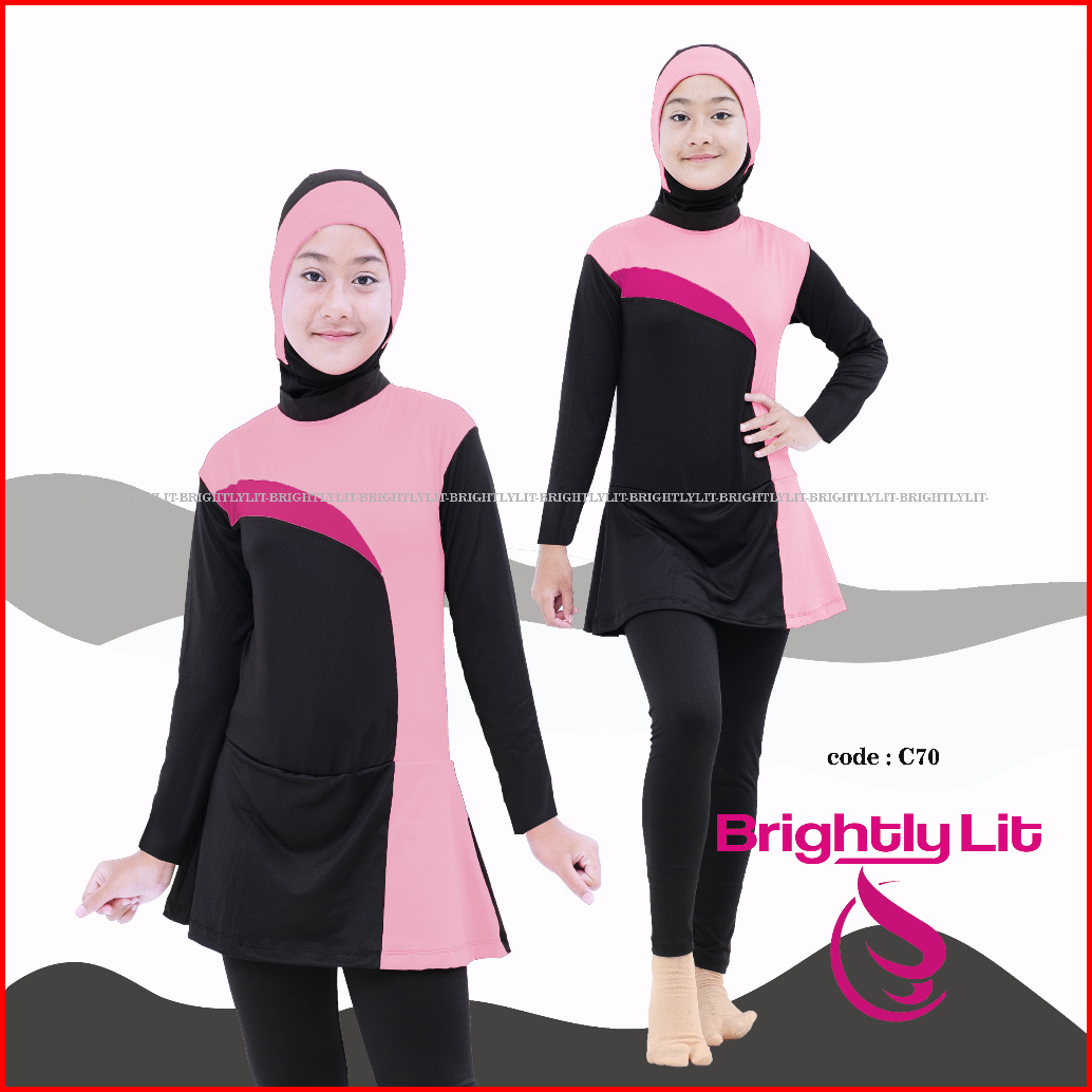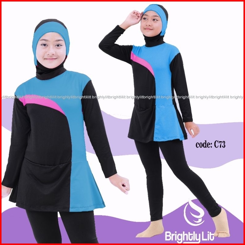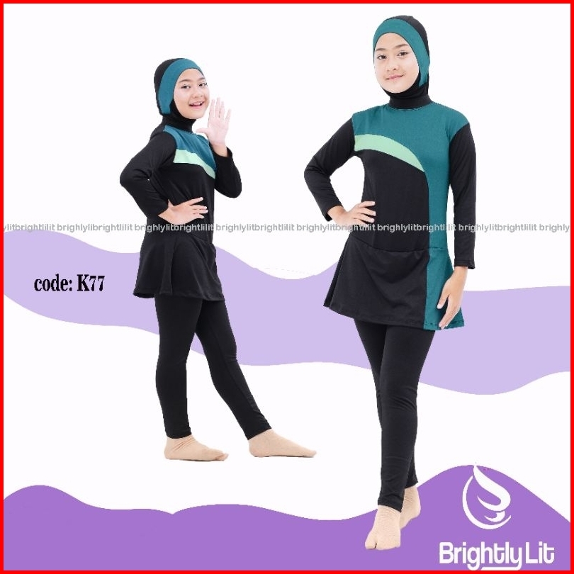 Brightlylit - 4 -12 Tahun Baju Renang Anak Perempuan Muslim Baju Renang Anak Wanita Muslimah Tk Baju Renang Anak Hijab B