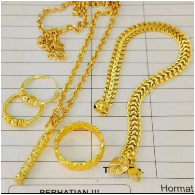 SATU SET PERHIASAN KOMPLIT WANITA DEWASA TITANIUM BERLAPIS EM4S 24K ANTI KARAT