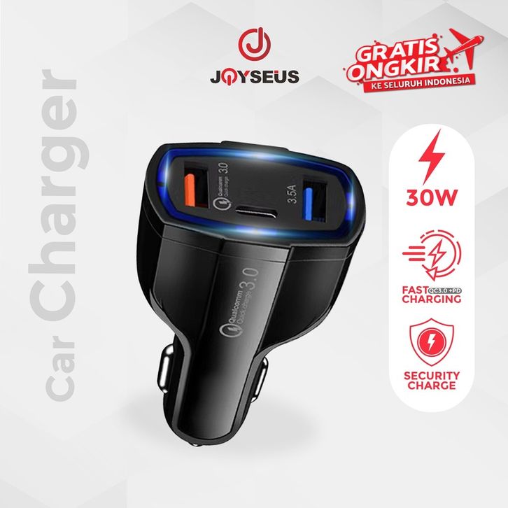 JOYSEUS Car Charger Fast Charger 3 Port USB QC 3.0 TYPE C Output Saver Mobil - JM0016
