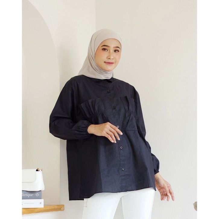 KEMEJA WANITA KANTONG SERUT BAJU ATASA KOREAN TERMURAH