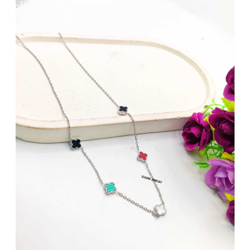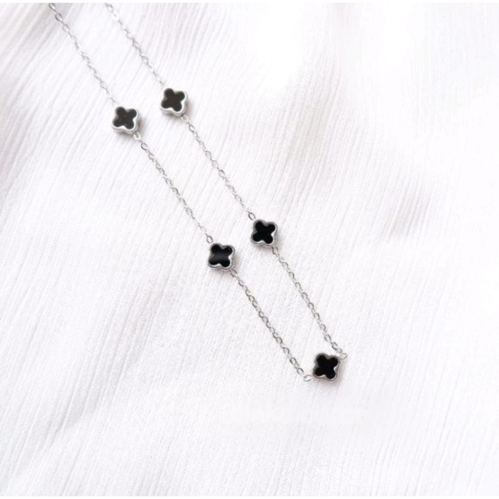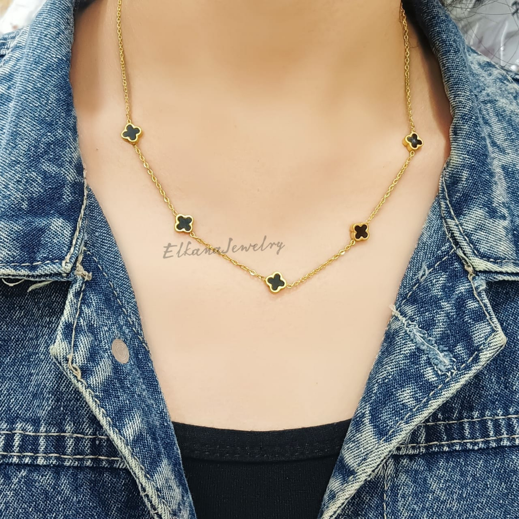 KALUNG TITANIUM FASHION BUNGA CLVR BOLAK BALIK 6 MM HITAM PERHIASAN SUPER BERKELAS KOREA ANTI KARAT DAN ANTI LUNTUR